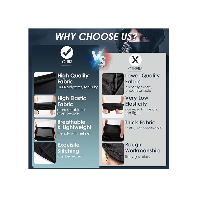 Cool, breathable and keeps you dry. To prevent facial congestion, Achiou Ice Silk face masks have a lightweight air-flow fabric that increases airflow and minimizes condensation. It also fits perfectly under a helmet and goggles and keeps your face and head warm.