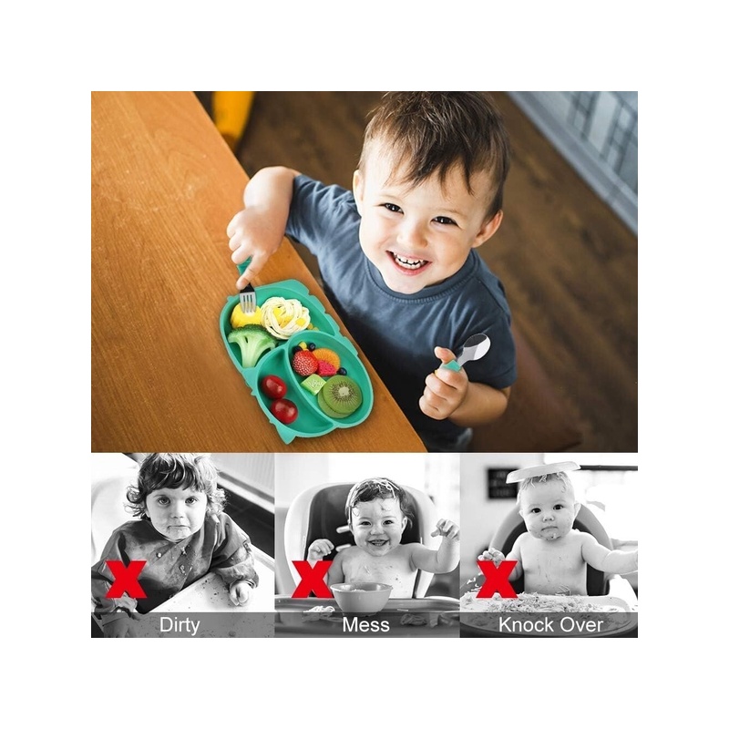 Silicone protection: The suction cup of the baby plate is wrapped in soft silicone, the curved surface is not sharp, the soft silicone prevents damage to gums and teeth. The durable spoon and fork are very suitable for your children.