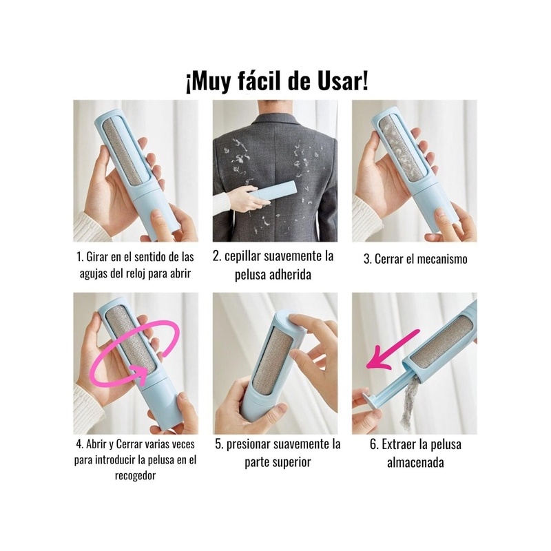 Intuitive use: simply twist to open, brush the desired area and when you're done, open and close to release the lint into the container. Done!