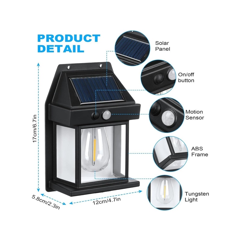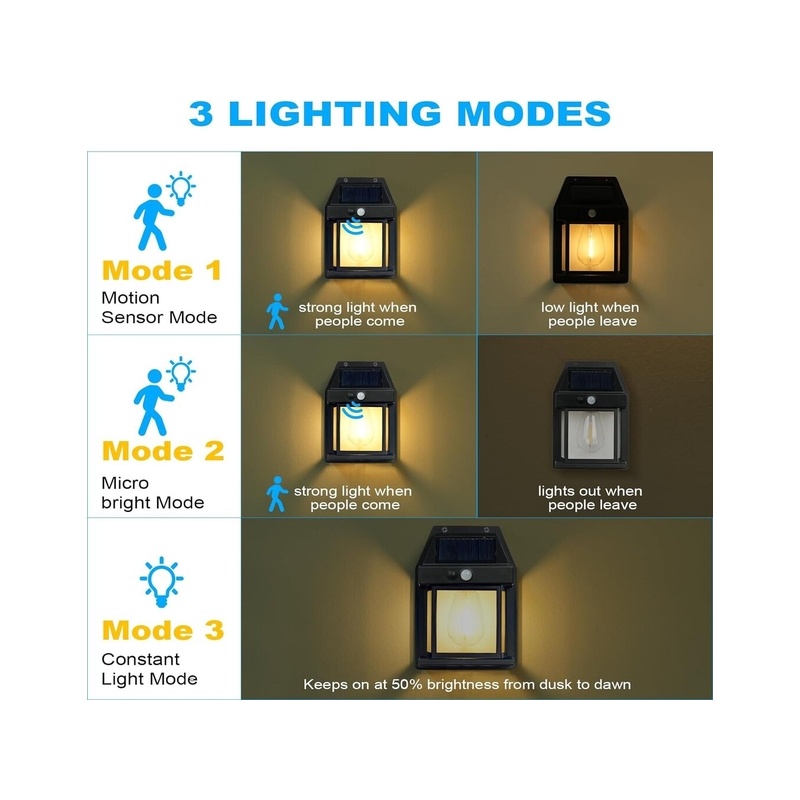 The solar panel wall light is not only environmentally friendly, but also easy to use. With a sensitive IR sensor, it can sensitively detect the brightness of the environment and automatically turn off at dawn and turn on at dusk within a distance of 26 feet (8 m) and an angle of 120°.