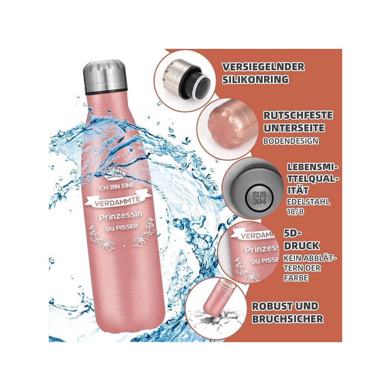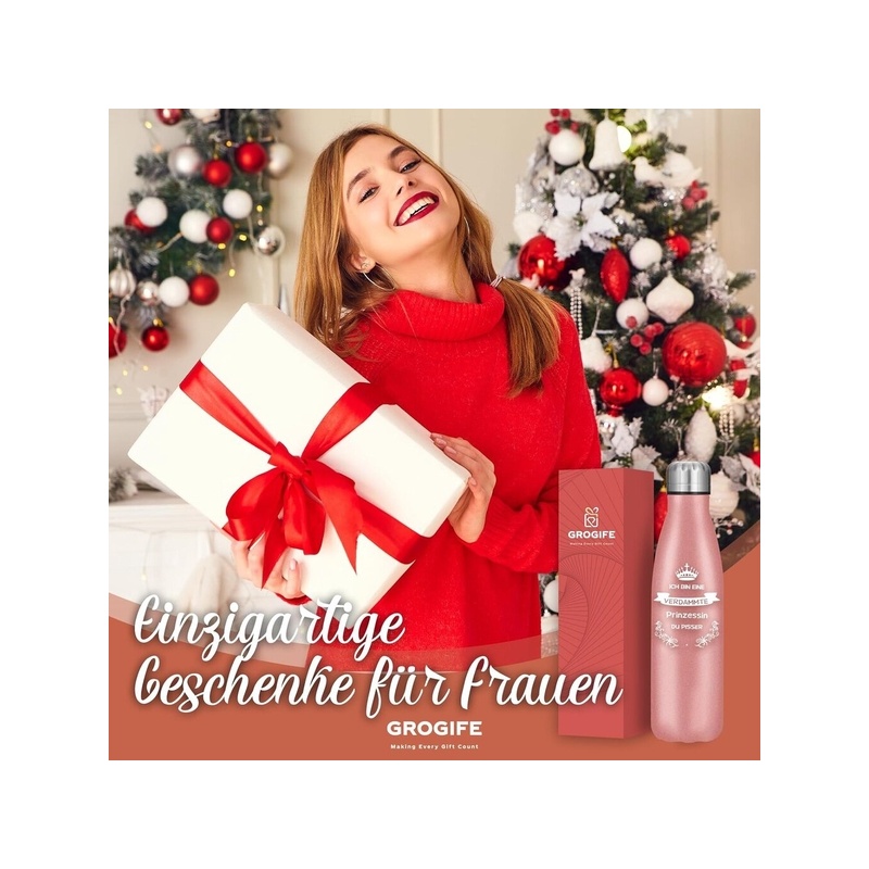 Funny Gifts for Women. Are you still looking for a fun gift for your girlfriend, best friend, sister, wife, colleague, boss or any other special woman in your life? Look no further! Then our 500 ml stainless steel drinking bottle with the inscription "I am a Princess" is the perfect gift for her. Each insulated water bottle is gift wrapped!