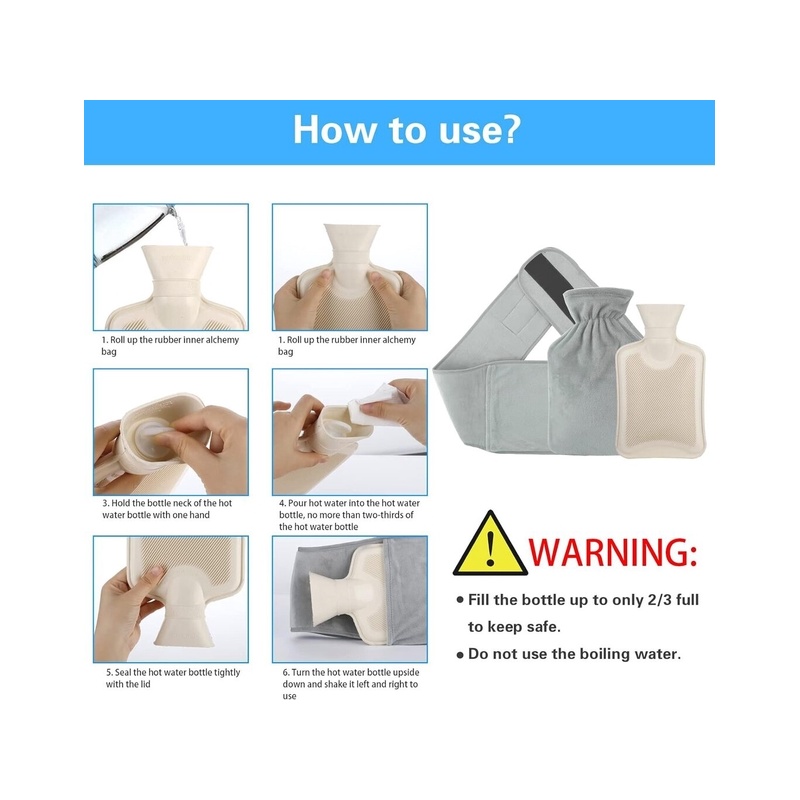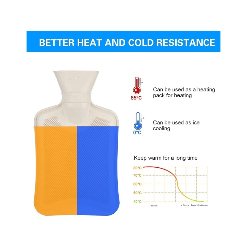 Long heating pads with lids from the UK are made of premium natural rubber. A soft and warm gift for children, adults and parents during the cold winter day and night. Note: Keep the hot water about 3-5 cm away from the neck of the bottle when pouring hot water into the neck of the bottle!