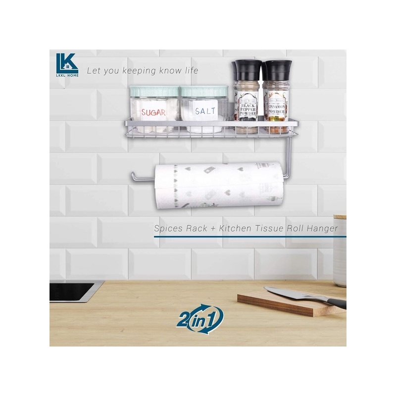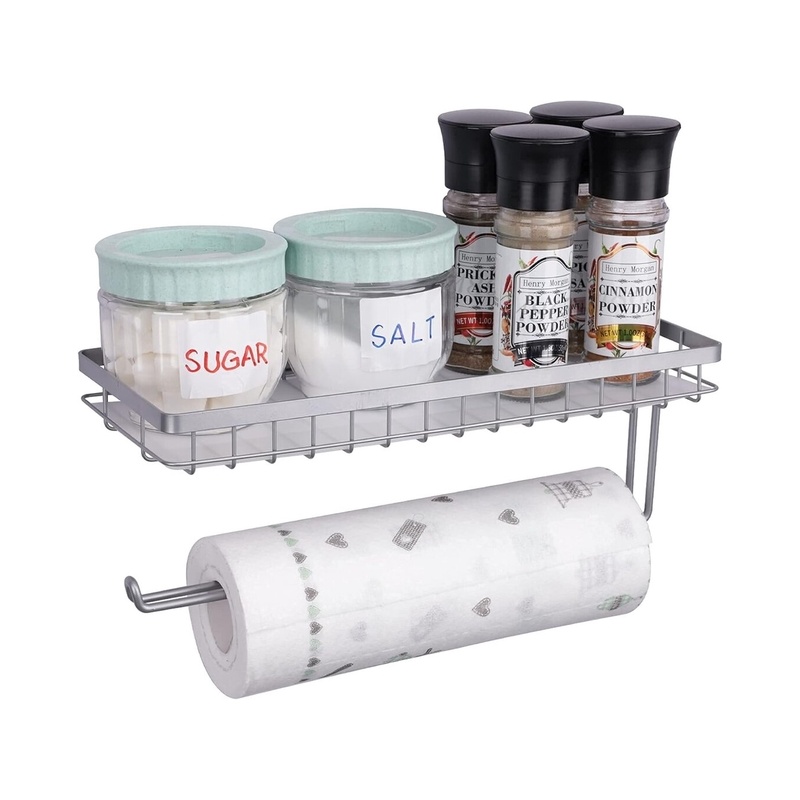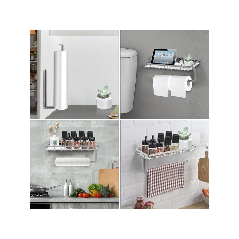 The multifunctional storage rack is designed as a paper towel rack and a spice rack, and is suitable for both kitchen and bathroom. The kitchen paper holder has a combination design: you can remove the paper towel hook and use the product as a shelf basket, which is suitable for various kitchen layouts.
