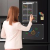 High-quality material: The reusable magnetic fridge board is made of high-quality transparent acrylic — durable, sturdy, and resistant to breaking or deformation. The acrylic magnetic board is equipped with four strong magnets that firmly attach to your fridge or any other metal surface. No drilling or gluing required. (Note: both sides of the magnetic board are covered with a protective film that must be removed before use.)