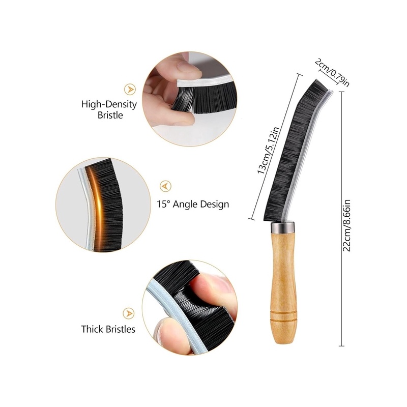 Ergonomic handle: The length of the hard bristle crevice cleaning brush is 23cm, the angled handle of the cleaning brush is made of high-quality wood, smooth and round, the long handle of the cleaning brush is ergonomically shaped for easy use and comfortable grip. , the angled handle with hard bristles The bristles provide precise control and maneuverability.