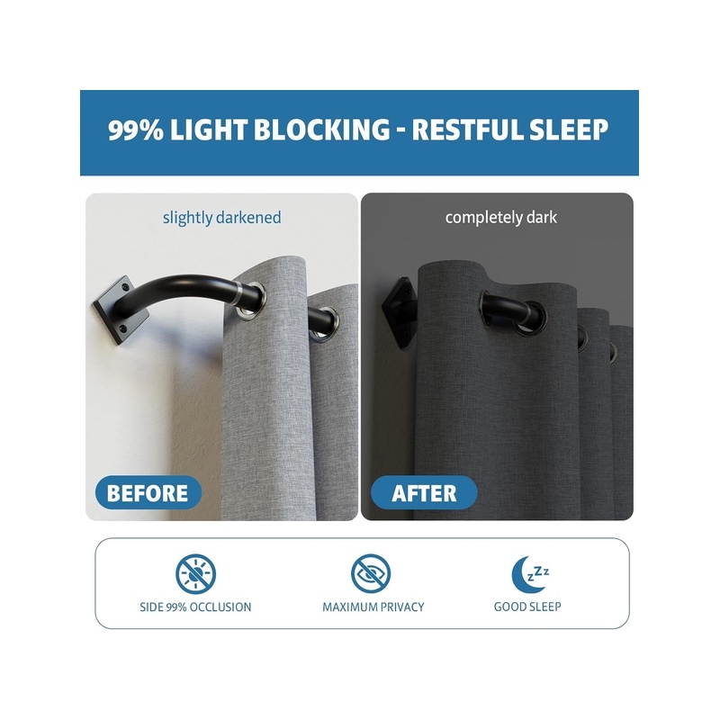 [Industrial style and premium quality] Black matte curtain rod in a modern industrial design, suitable for medium-weight curtains and fits seamlessly into any interior.
