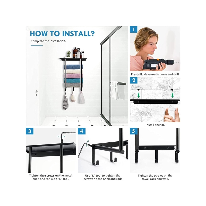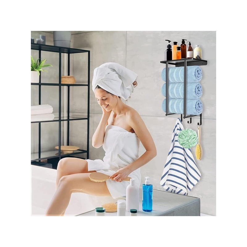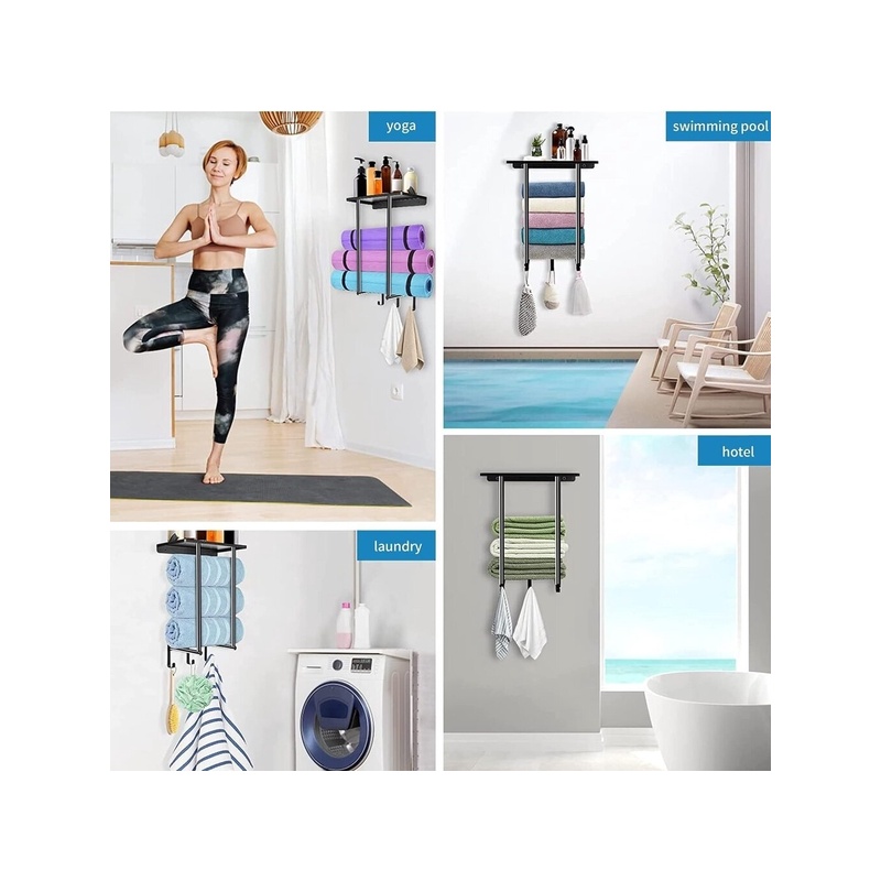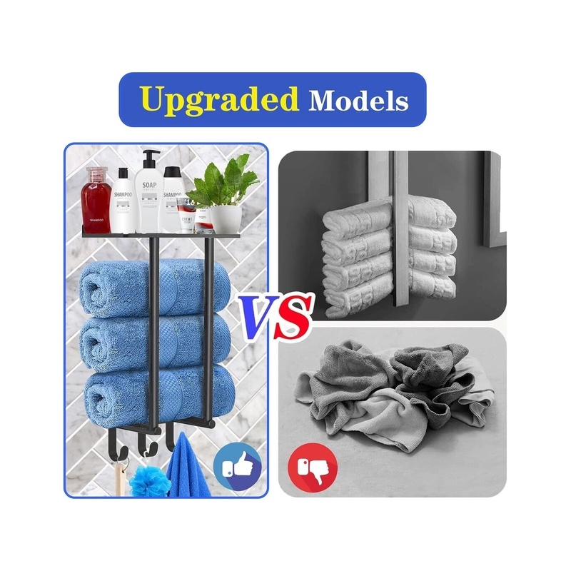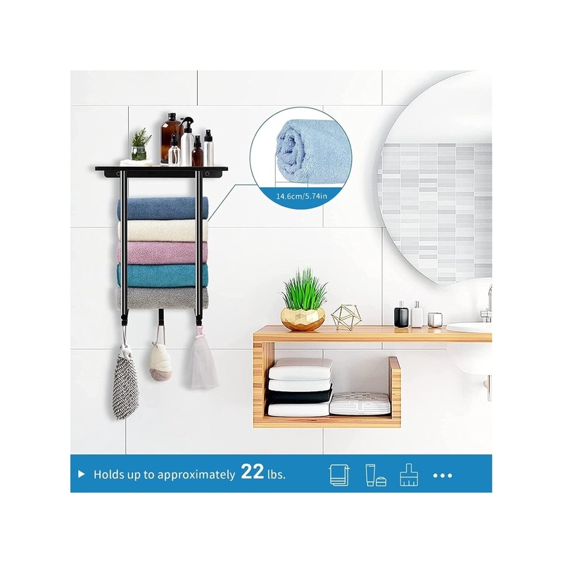 Peen disain: selle käterätikuhoidja ülaosas on riiulid, et rätikud ei kukuks ja ei jääks korralikult organiseeritud. Lisaks saab riiuli ülaosa kasutada väikeste esemete hoidmiseks, maksimeerides selle kasulikkust ja säästes ruumi.