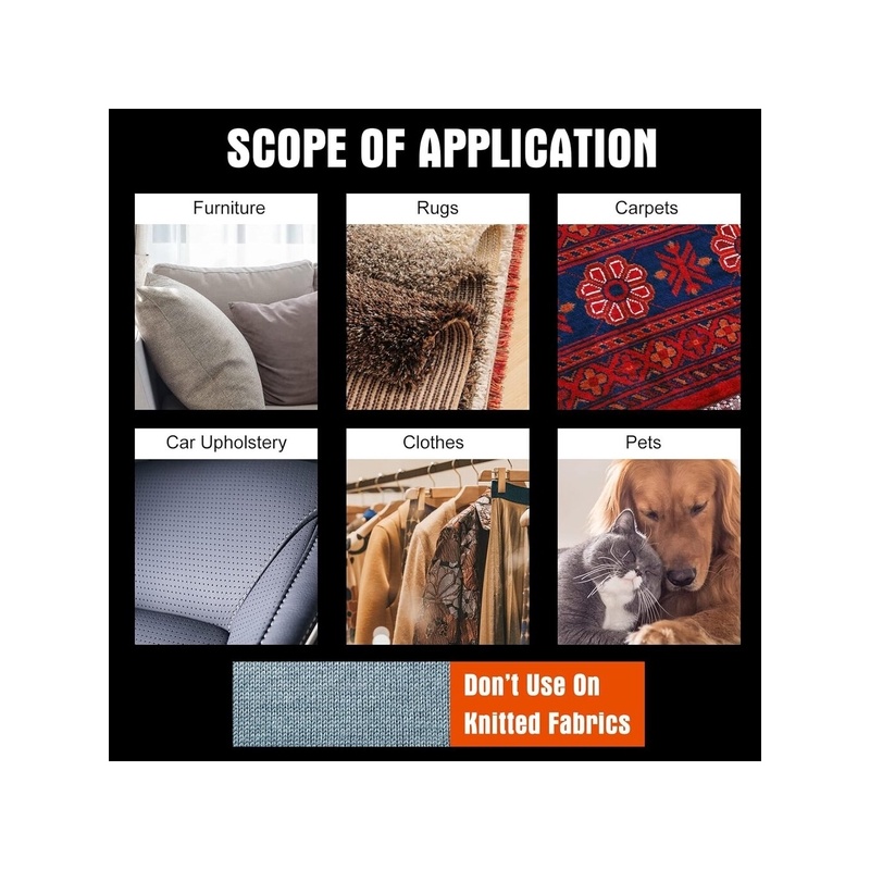 The plastic head of the pet hair remover can be used on soft materials such as wool or low-density knitted clothes. Do not grab or drag the clothes.