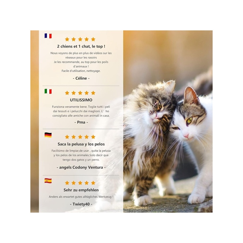 The Pet Hair Remover is made of natural wood, high-quality copper and environmentally friendly plastic. It has a long service life and is sharp enough not to leave a sticky residue.