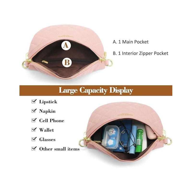 Kõrge kvaliteet: väike naiste õlakott on valmistatud kvaliteetsest PU-nahast, kerge, vastupidav ja pehme. Sujuv topelttõmblukuga disain teeb sellest mitmekülgse valiku igapäevaseks kandmiseks, samas kui pehme polüestervooder kaitseb teie igapäevaseid esemeid.