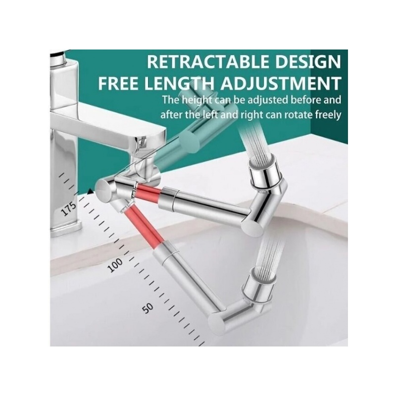 Monipuolisessa nosturisuunnittelussamme on nerokas teleskooppivarsi, jota voidaan pidentää 5 cm, mikä laajentaa sen ulottuvuutta ja lyhenee, kun sitä ei käytetä. Se asennetaan kylpyhuoneeseen ja keittiöön, jota käytämme usein päivittäin pienenä lisänä lisäämään onnellisuutta elämässä. Voit helposti hoitaa kaikki kulmat. Paranna käsien pesua, kylpemistä ja shampoopesua ja säästä vettä.