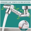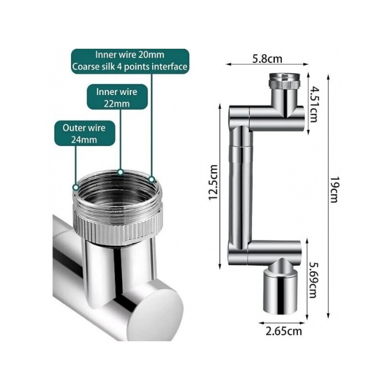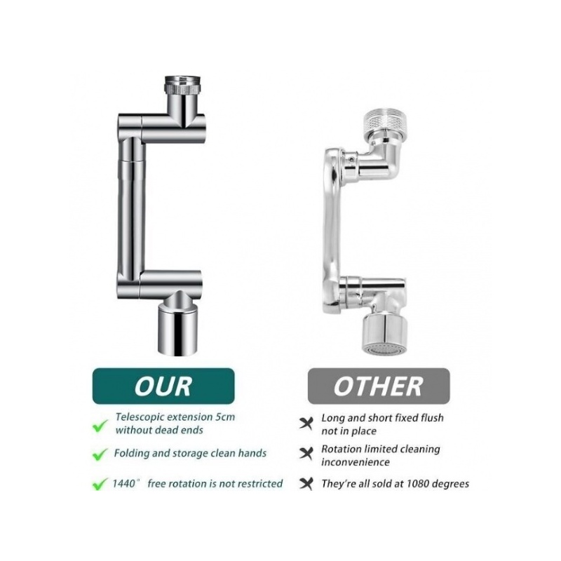 Vedenpitävä roisketiivis hanasuodatin 1440° robottivarrella: ihanteellinen ratkaisu ongelmiin, jotka johtuvat väärästä pesualtaan suunnittelusta ja alkuperäisestä hanasta. Siinä on neljä 360° mekaanista vartta, jotka ulottuvat ulospäin pyörimään eri suuntiin ja puhdistamaan kaikki kulmat. Älä käytä kuppia suun huuhteluun, vaan käännä se ympäri ja suuntaa vesi suoraan täyttöaukkoon, mikä voi olla terveellisempää ja turvallisempaa sekä parantaa elämänlaatuasi.