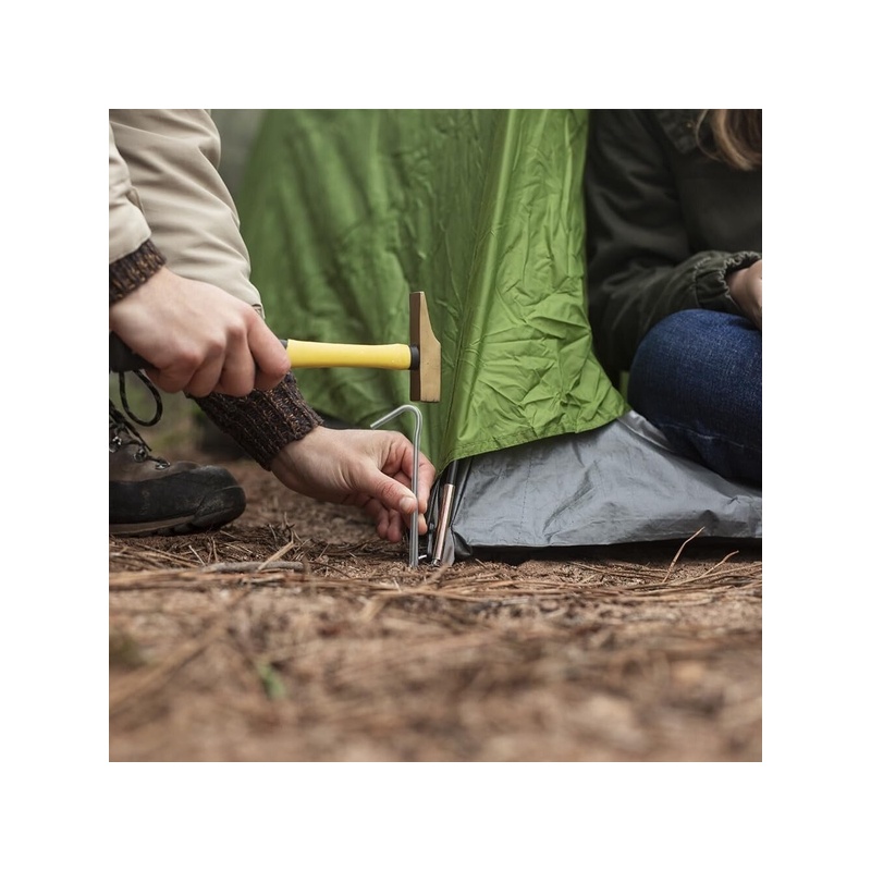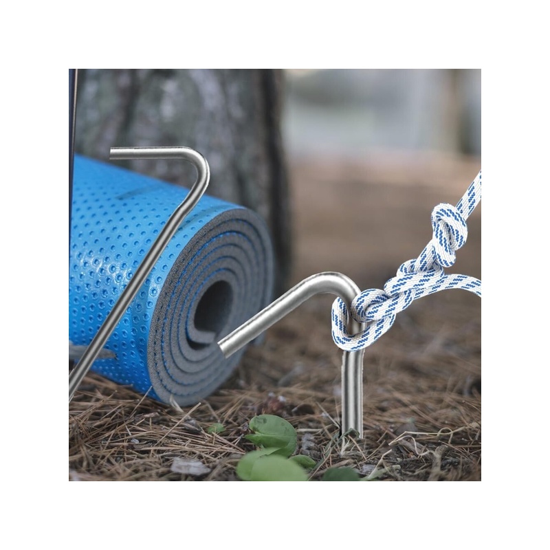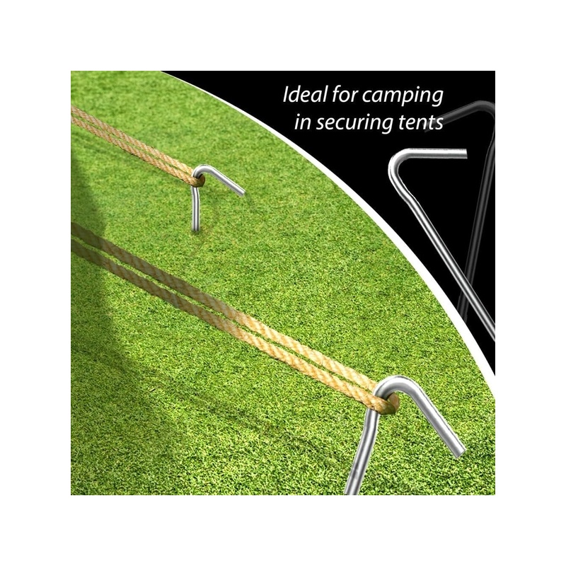 Nämä metallitapit eivät sovellu vain telttoihin, vaan ne soveltuvat myös muiden ulkotarvikkeiden, kuten pressujen, markiisien ja puutarhaverkkojen, kiinnittämiseen. Ne tarjoavat turvallisen ratkaisun tavaroidesi pitämiseen paikoillaan.