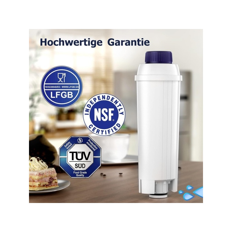 Korkea laatu. DeLonghi DLSC002 vedensuodatin on testattu ja sertifioitu. Kestävä muovikuori takaa tiiviyden, estää aktiivihiilen pääsyn vesisäiliöön ja varmistaa puhtaan, mauttoman veden.
