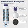 Vinkit: suodatin on valmistettu elintarvikekäyttöön hyväksytyistä materiaaleista, joissa käytetään luonnollista kookoshiiltä ja korkealaatuista hartsia. Säilytä viileässä, kuivassa paikassa, poissa auringonvalosta ja lämmönlähteistä. Kosteassa tilassa säilyttäessä voi syntyä haju. Ennen käyttöä huuhtele suodatinta 5–10 minuuttia puhtaalla vedellä ja anna sen kuivua täysin hyvin ilmastoidussa tilassa.