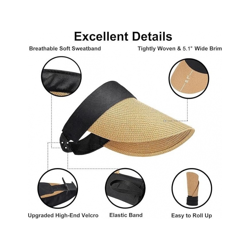 Tämä naisten leveälierinen visiiri on valmistettu ympäristöystävällisestä kierrätyspaperista. Hengittävä ja mukava. Tiukka kudos takaa laadun ja kestävyyden. Vahva UV-suojatoiminto.