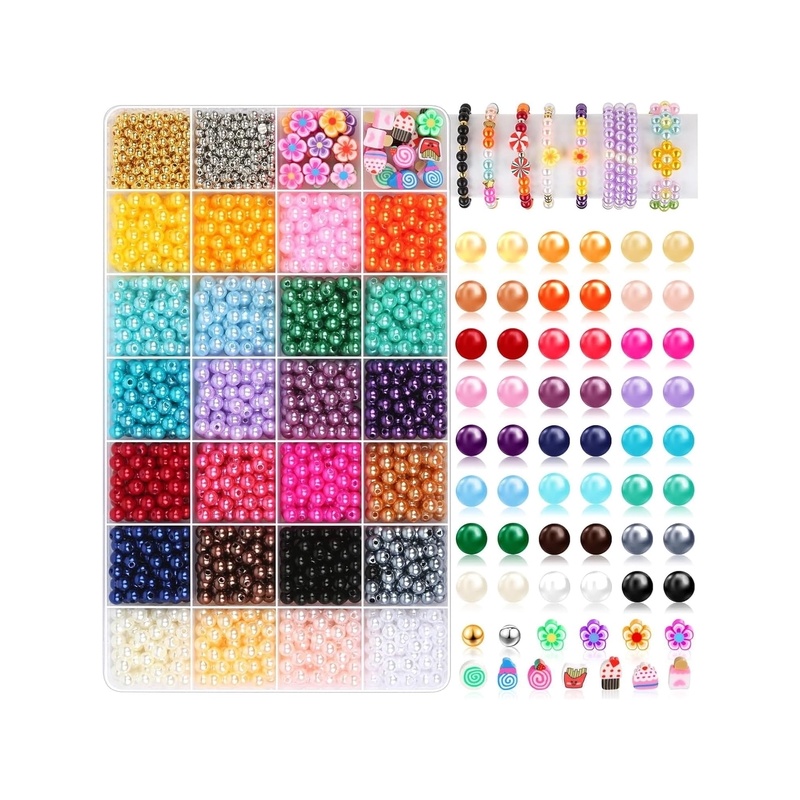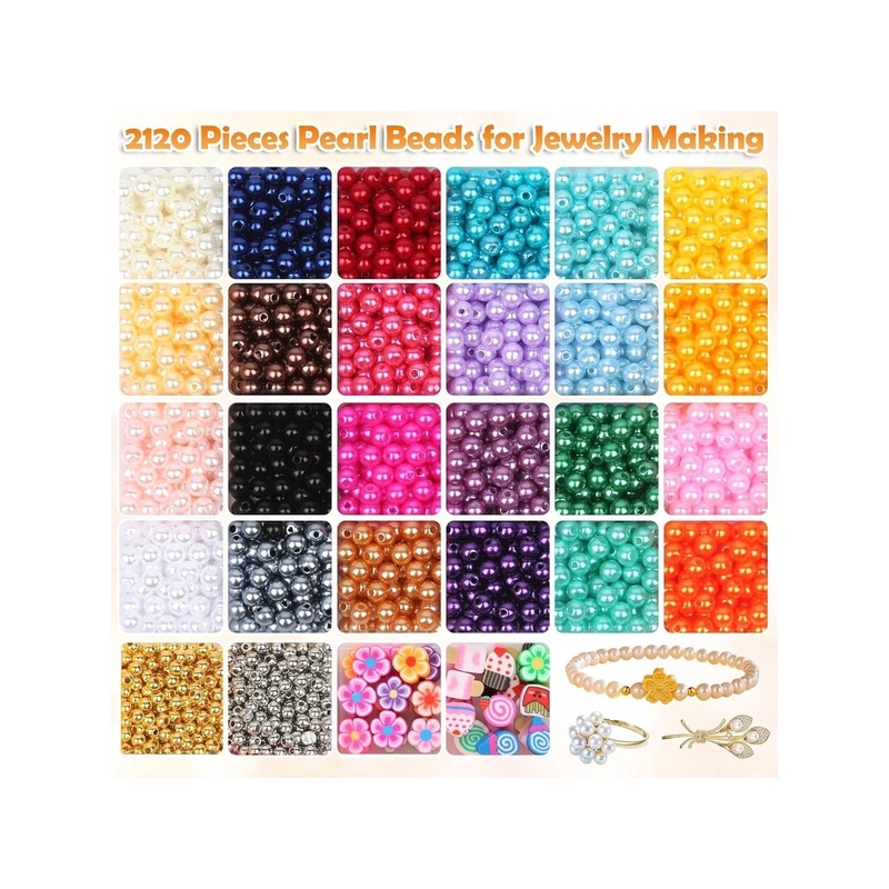Helmiä pujottamiseen: sisältää 2120 pyöreää helmeä 3 eri koossa ja 24 eri värissä, riittävästi ja värivalikoima tyydyttää käsityötarpeesi.