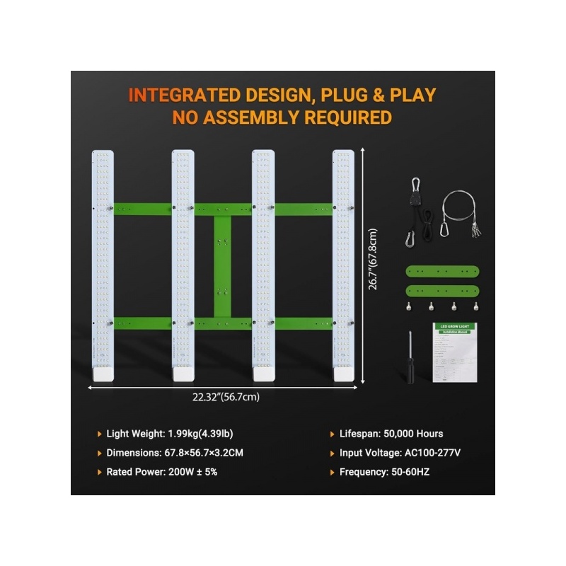 【Uusin integroitu rakenne】: Sisäänrakennettu rakenne, ei tarvitse kokoamista tai asennusta — liitä ja käytä. Järjestelmää voi helposti laajentaa tai kytkeä useita valaisimia porttien kautta, jolloin valaistaan suuri alue. Sopii kaikkiin kasvatusalueisiin.