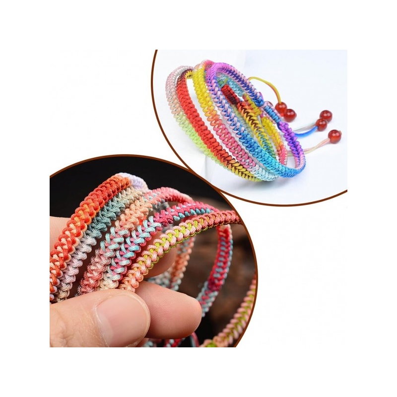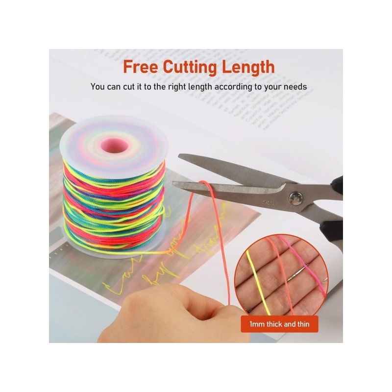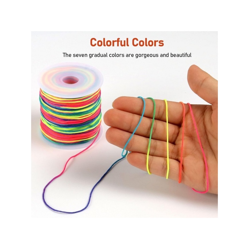 Käyttökohteet: Rainbow-kuminauha sopii ihanteellisesti rannekorujen ja kaulakorujen, pienten kiinalaisten solmukorujen, autokorujen, laukkukoristeiden, kudottujen lelujen, käsintehtyjen korujen valmistukseen, elastisiin rannekoruihin, matkapuhelinkoruihin, lasten askartelumateriaaliksi, kouluprojektien opettamiseen. työkalu.