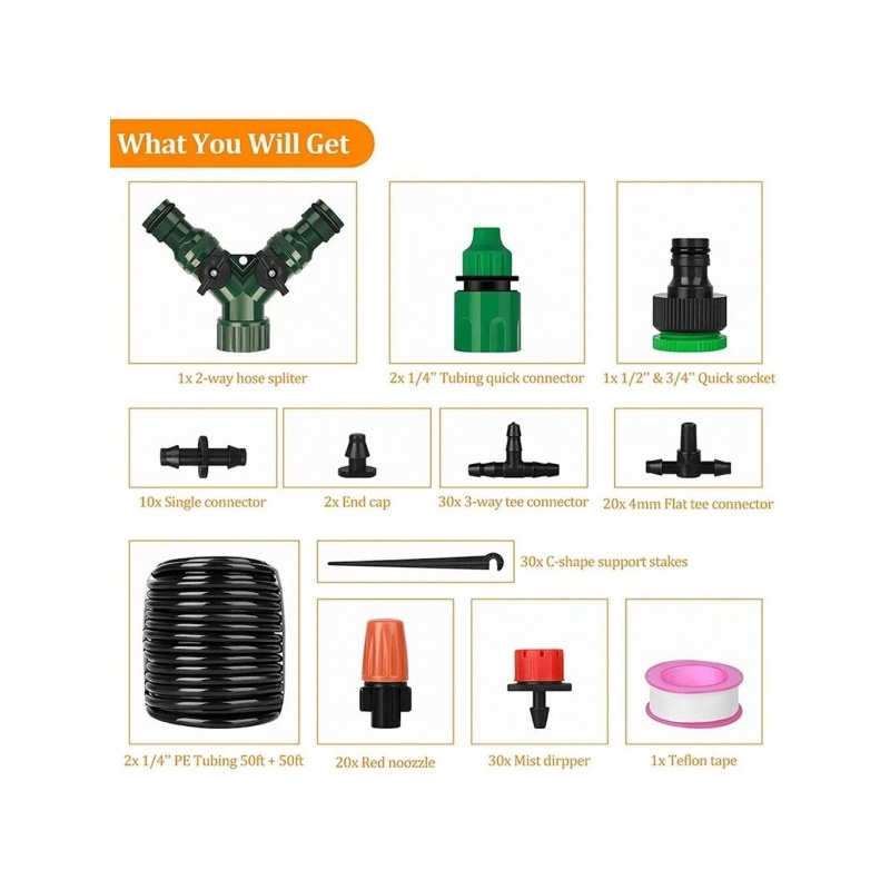 149 kpl. mukana, 30 metriä. Automaattinen kastelu