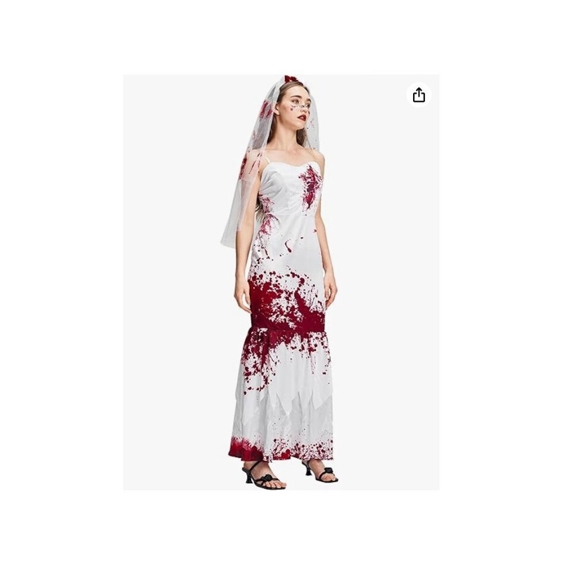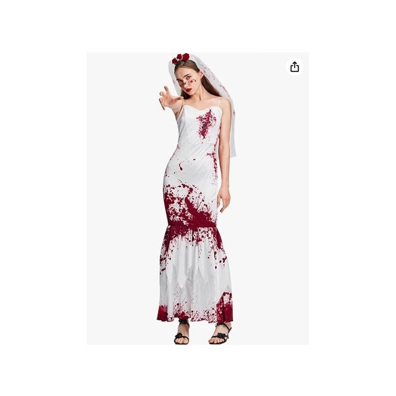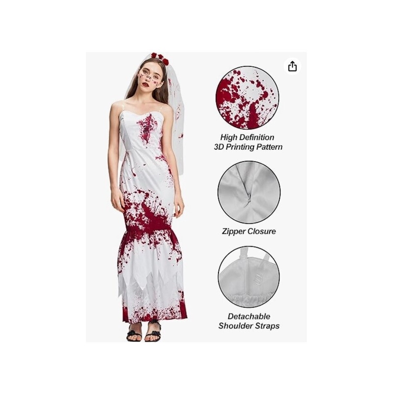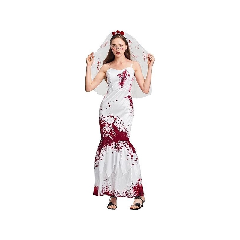Zombie-verimorsiamellamme on kalanhäntämuotoilu, seksikäs ja viehättävä. Suuri veritahra puhtaan valkoisen mekon päällä, verisellä hunnulla, haudasta nousee aavemainen morsian.
