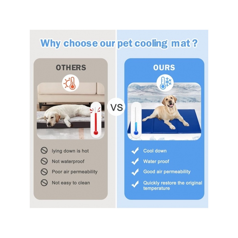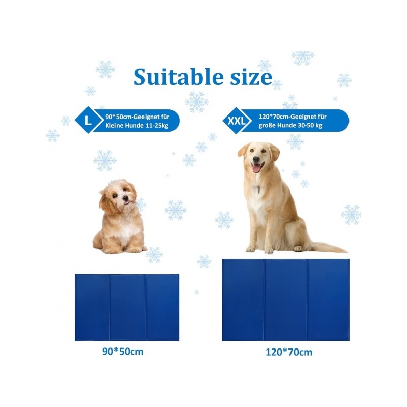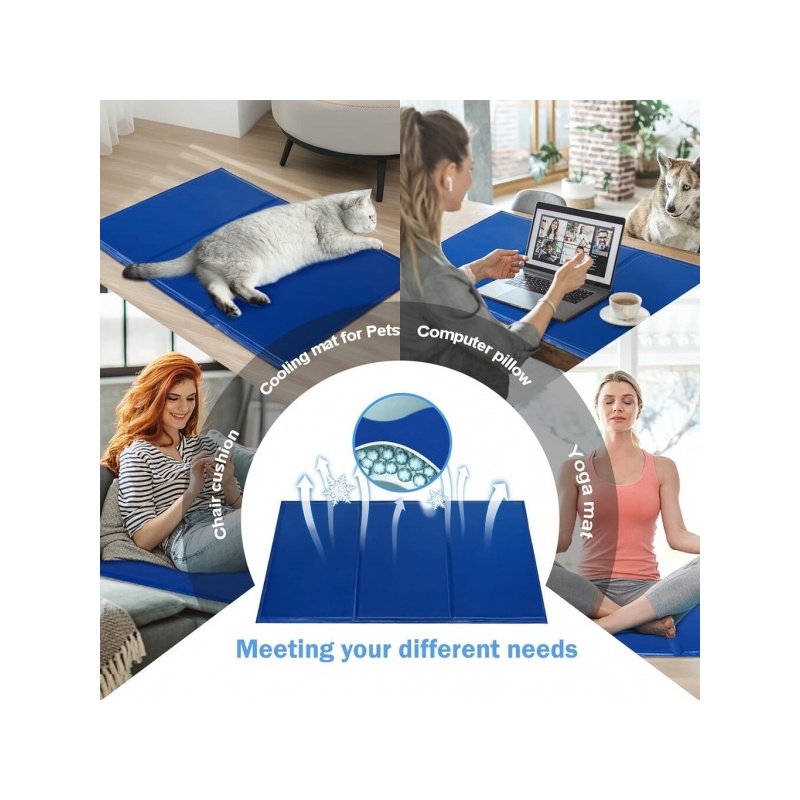 - Koiran jäähdytysmatto: Iskunvaimennus geelityynyillä, matto on ihanteellinen koiransänkyyn, kuljetuslaatikoihin, kenneleihin, auton takapenkille tai vain lattialle. Sitä voidaan käyttää paitsi lemmikkien jäähdytysmattoina, myös mattoina, istuinmattoina tai tietokoneiden jäähdytysmattoina. Monikäyttöinen tyyny sopii lemmikeille ja ihmisille.