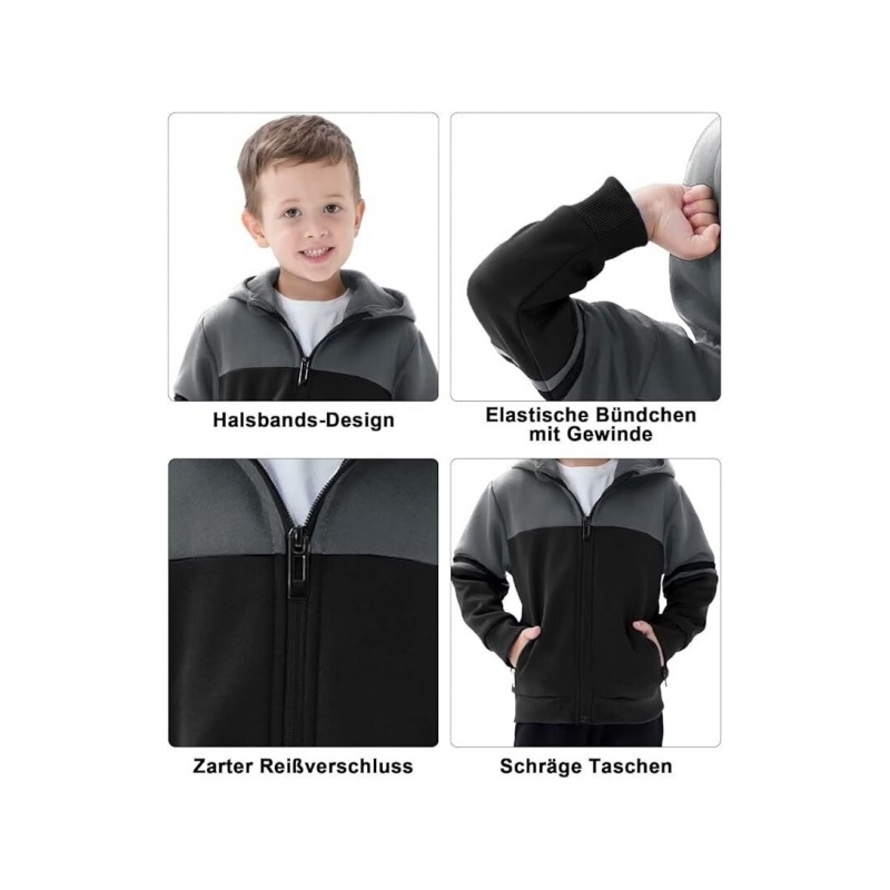 JACKETOWN lasten hupullinen villapaita, musta-harmaa XL