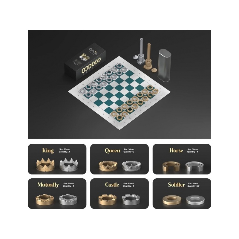 Loistava muotoilu. Yhtenä markkinoiden ainutlaatuisimmista shakkinappuloista olemme suunnitelleet jokaisen shakkinappulan taiteellisesti uudelleen antaaksemme sille minimalistisen ilmeen, jossa on selkeästi tunnistettavat visuaaliset elementit. Toisin kuin perinteisessä puisessa shakissa, moderni veistoksellinen muotoilu ja metallirakenne antavat shakkinappuloillemme taiteellisen ilmeen.