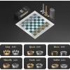 Ainutlaatuinen säilytystapa: Shakkinappulat luokitellaan kahteen väriin (kulta ja hopea) shakkipelin molemmille puolille. Aseta yksittäiset osat keskirenkaaseen ja kiinnitä ne päälukolla. Ne on erittäin helppo avata ja sulkea soljen ansiosta, joka pitää shakkisarjan vakaana eikä putoa. Sopii matkustamiseen ja pelaamiseen.