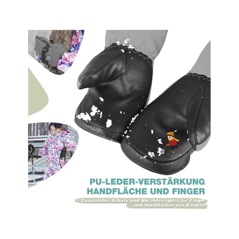Erinomainen vedenpitävyys: Käsineiden ulkoosa on valmistettu vedenpitävästä nylonkankaasta, joten hanskat eivät kastu jäällä ja lumella urheillessa ja estävät myös lasten käsien jäähtymisen. Ihanteellinen hiihtoon, lumilautailuun, kelkkailuun, luistelemiseen, lumipallotaisteluihin, lumen rakentamiseen ja muihin talviurheilulajeihin.