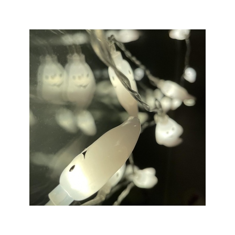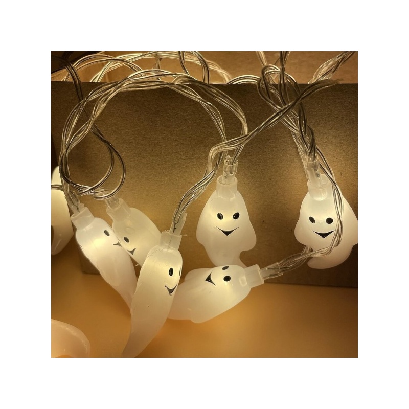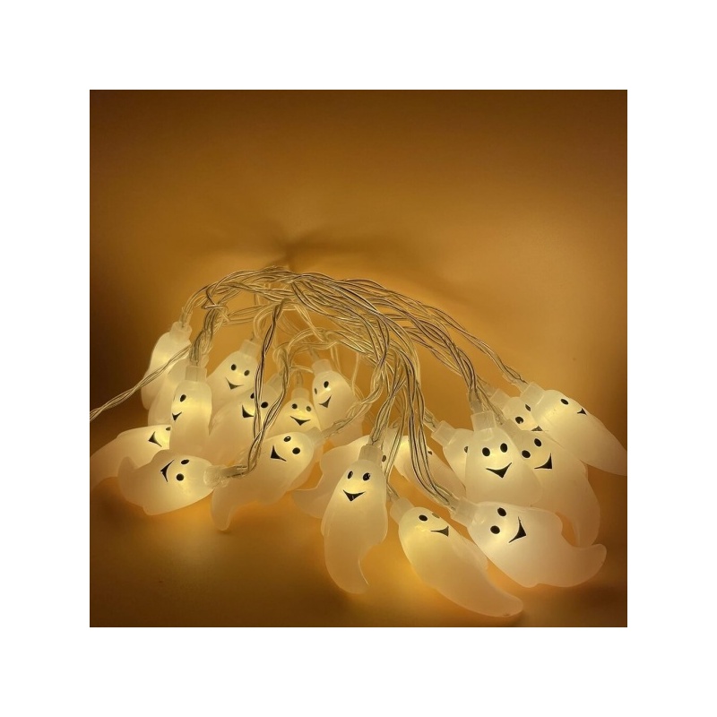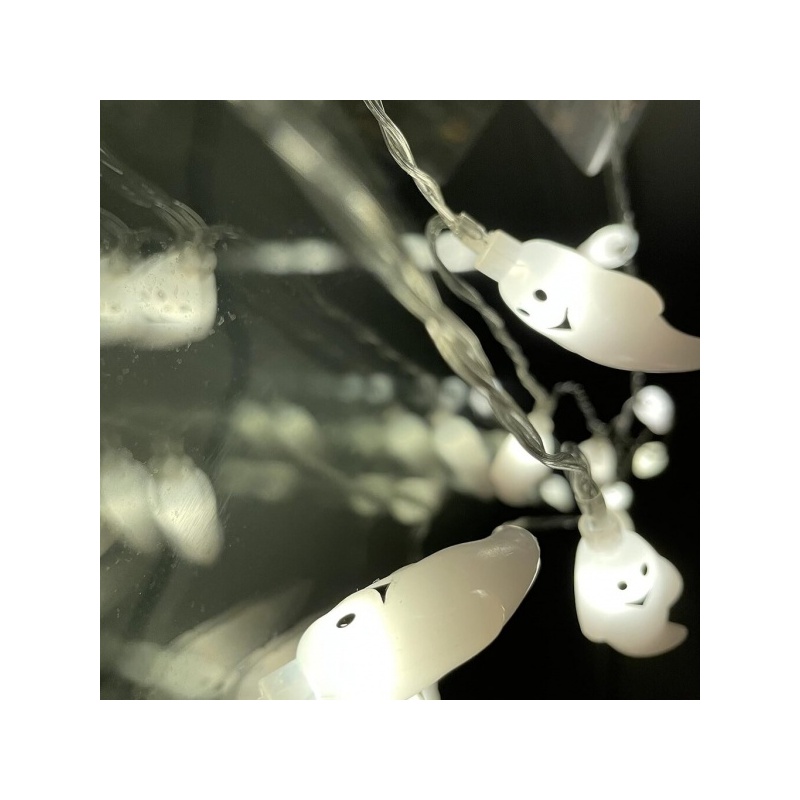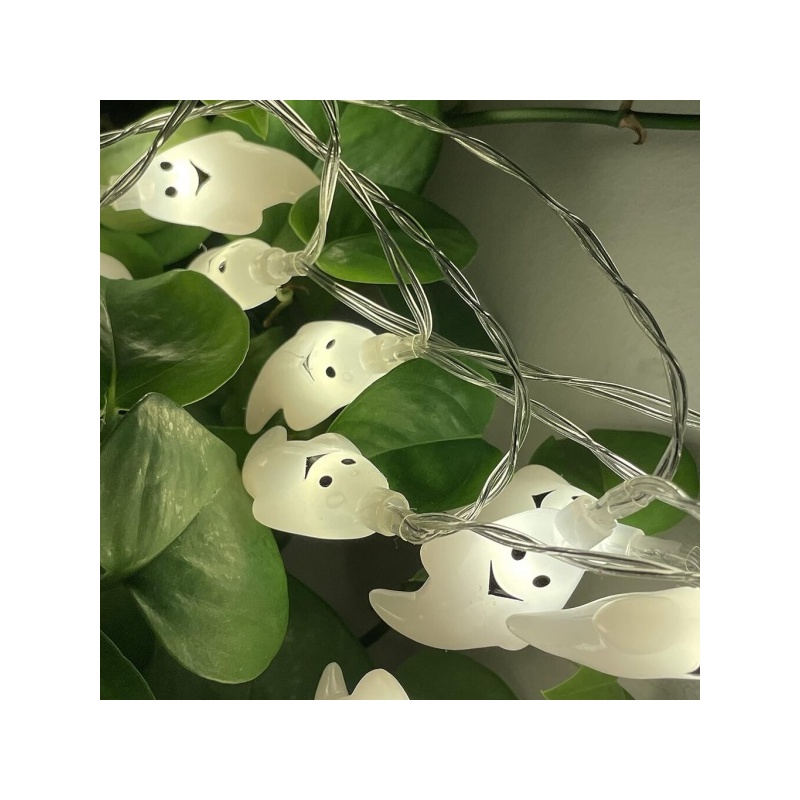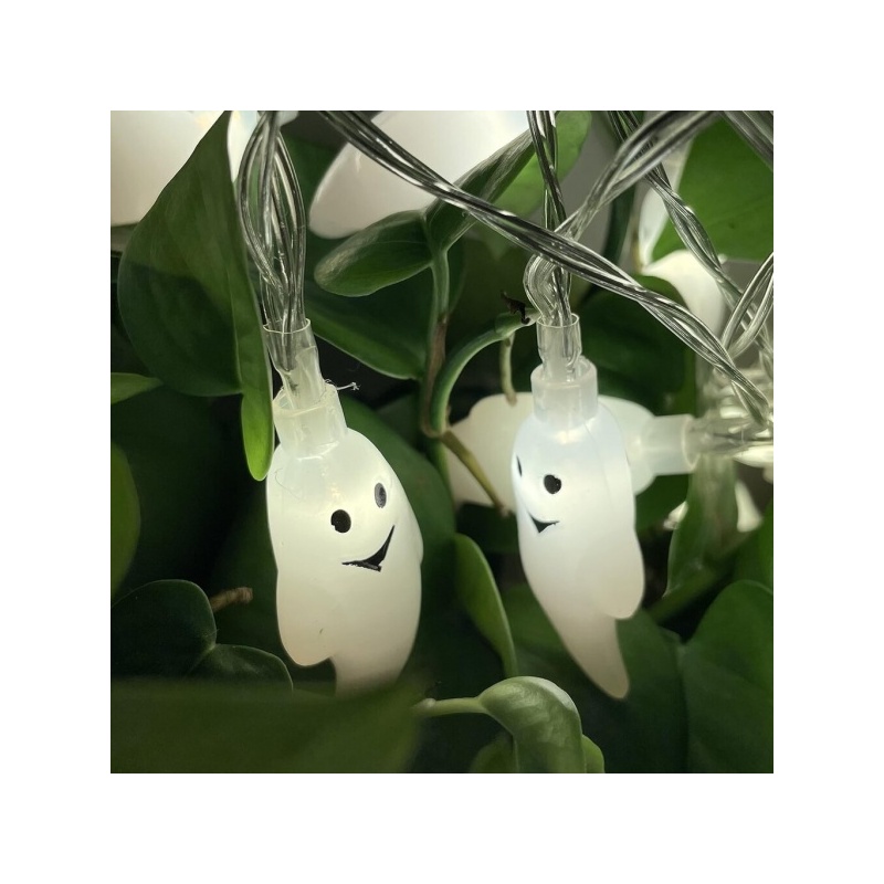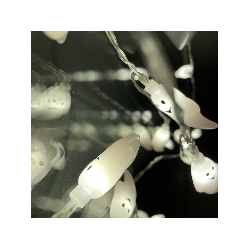 Pienen aaveen sisällä olevat 20 mini-LED-valoa lähettävät aavemaista valkoista hehkua. Voit kytkeä ne päälle jatkuvasti tai vilkkua painamalla paristolokeron kytkintä. LED-valot on kytketty vahvoilla johtoilla, vaikka yksi valo sammutetaan, muut ovat edelleen päällä. Luo lämmin ja viehättävä valaistusilmapiiri.