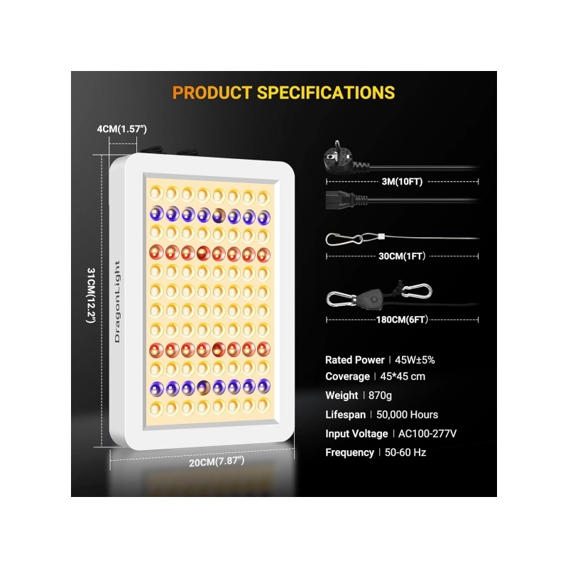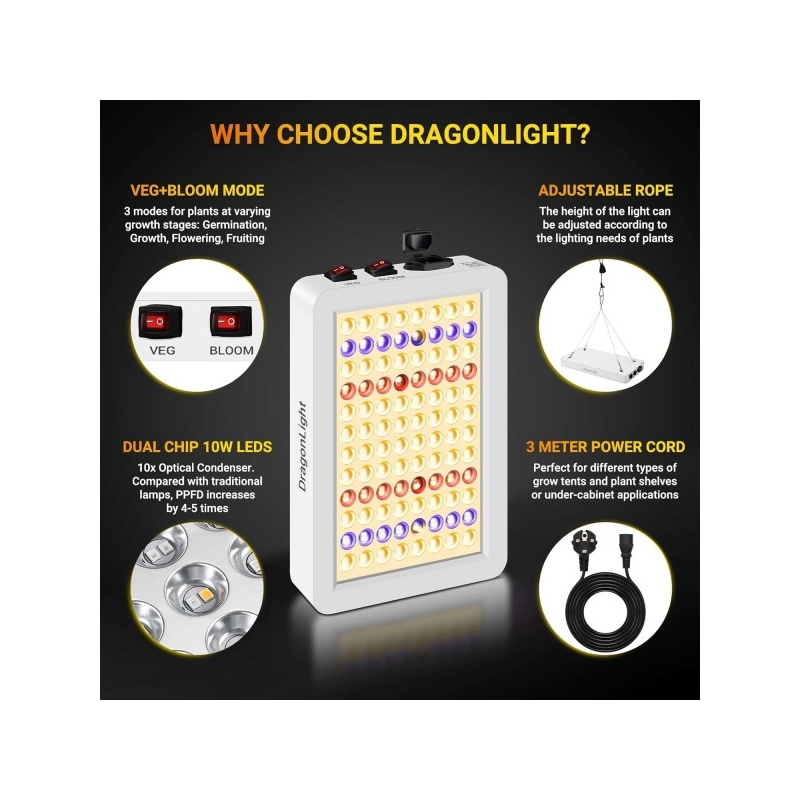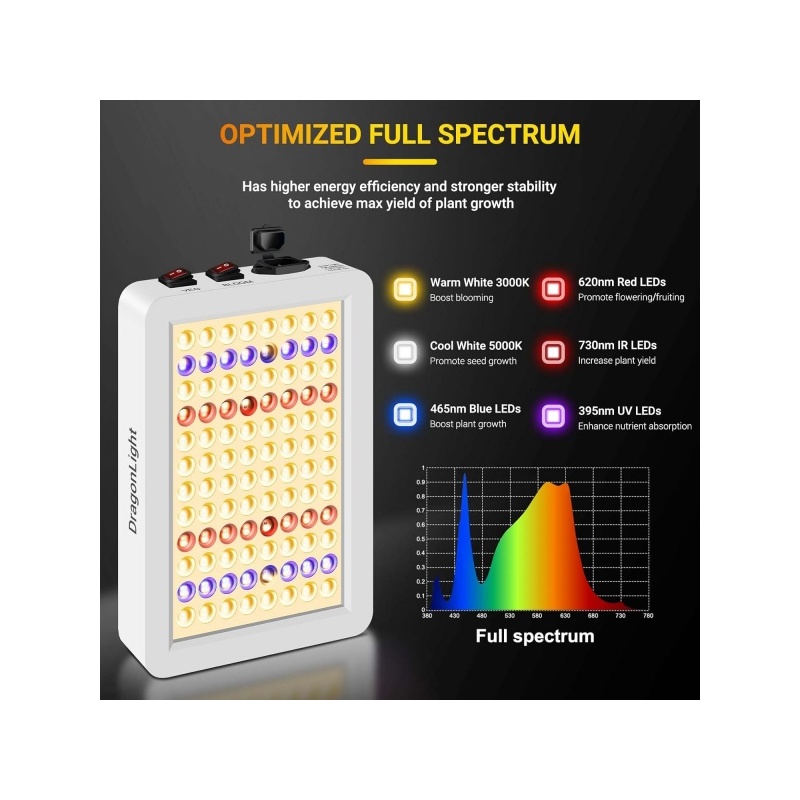 Täyden spektrin DragonLight LED kasvilamppu UV- ja IR-säteilyllä, kaksisirulamppu kasveille 3 m johdolla kasvihuoneisiin ja huonekasveille, vihanneksille ja kukille.