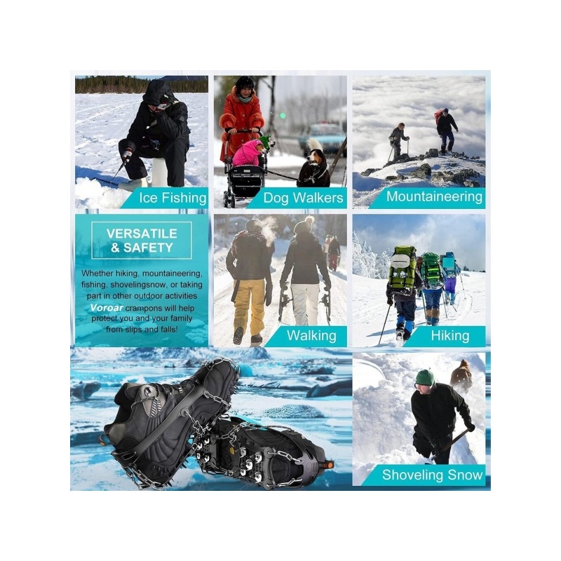 Helppo käyttää: Tarvitset vain kolme askelta, ja voit pukea krampit yhdessä minuutissa, ne on erittäin helppo pukea ja riisua.