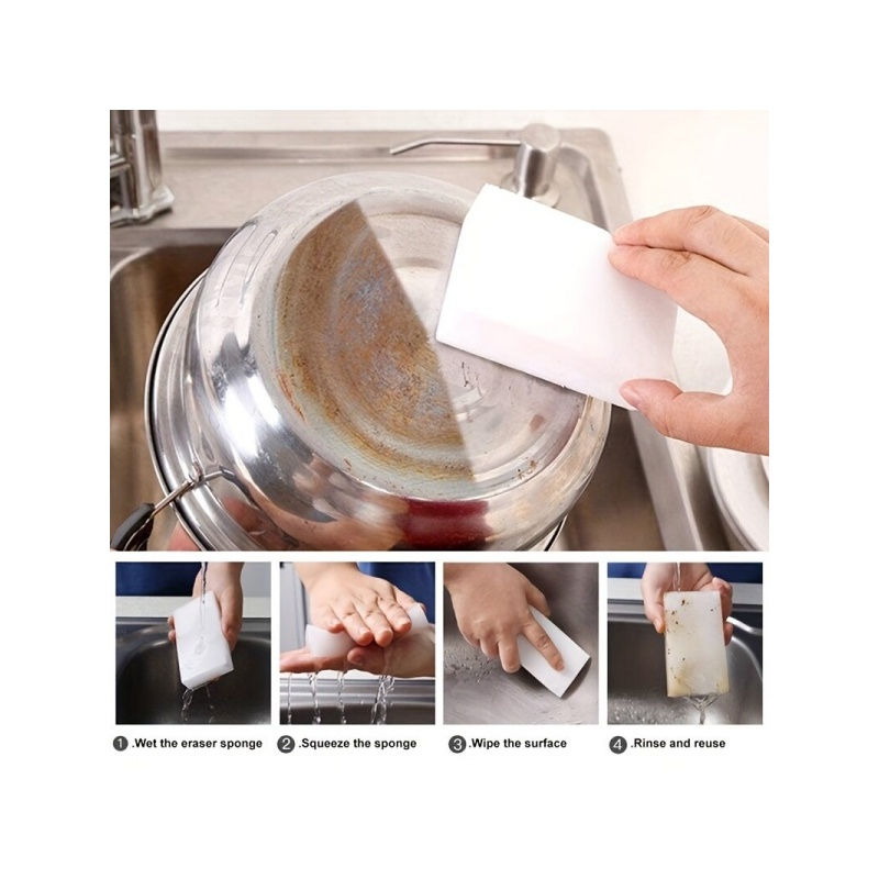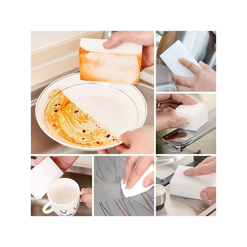 - Melamiinisienet: Valmistettu melamiinivaahtomateriaalista, joka tunnetaan puhdistusominaisuuksistaan, poistaa tehokkaasti erilaisia tahroja ja jälkiä ilman perinteisiä puhdistusaineita pintojen puhdistuksessa.