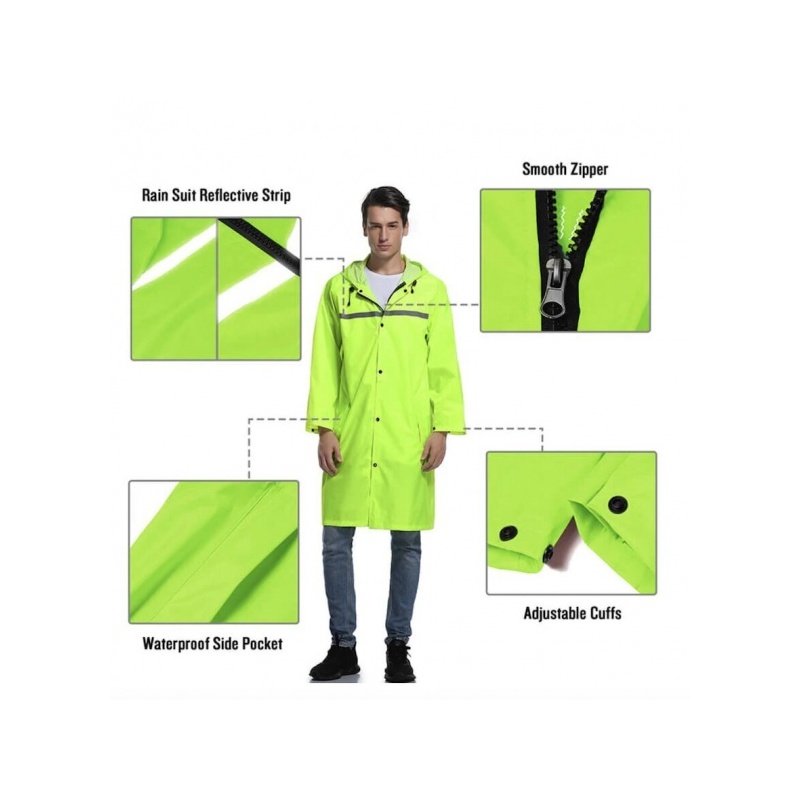 [Ainutlaatuinen muotoilu]: Suojaavat heijastavat raidat sadetakin takana/sadetakin edessä, kaksi sivutaskua, kätevä henkilökohtaisten tavaroiden, kuten avainten ja matkapuhelimien, säilyttämiseen, käytännöllinen ja turvallinen.