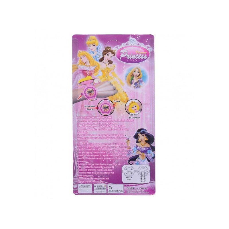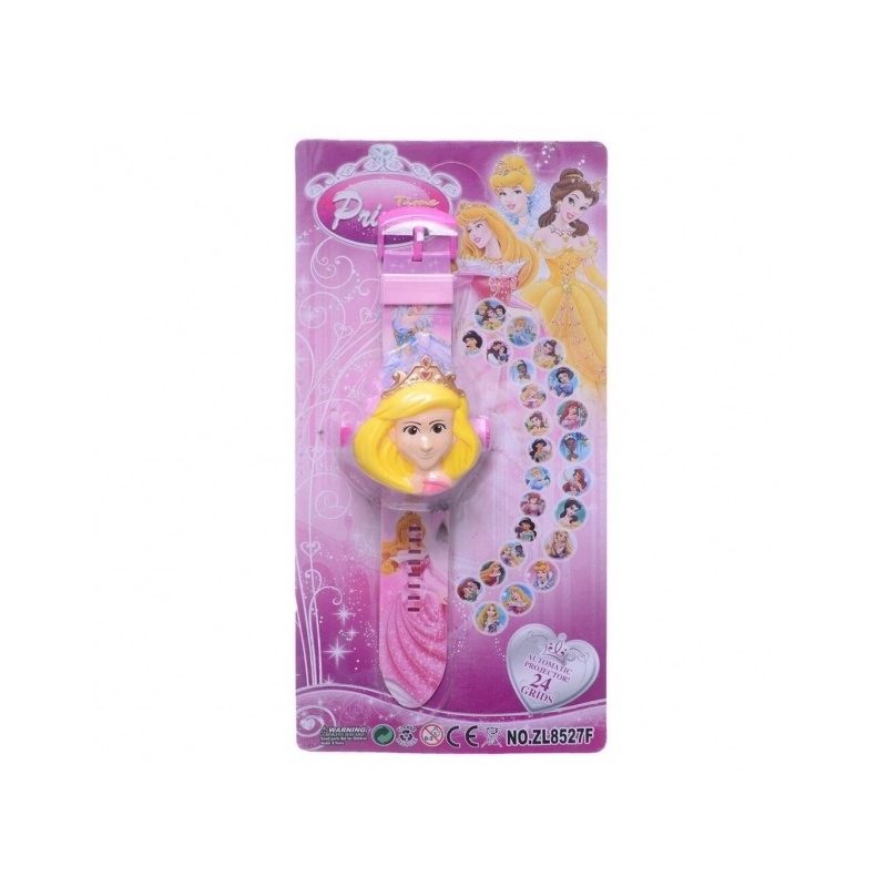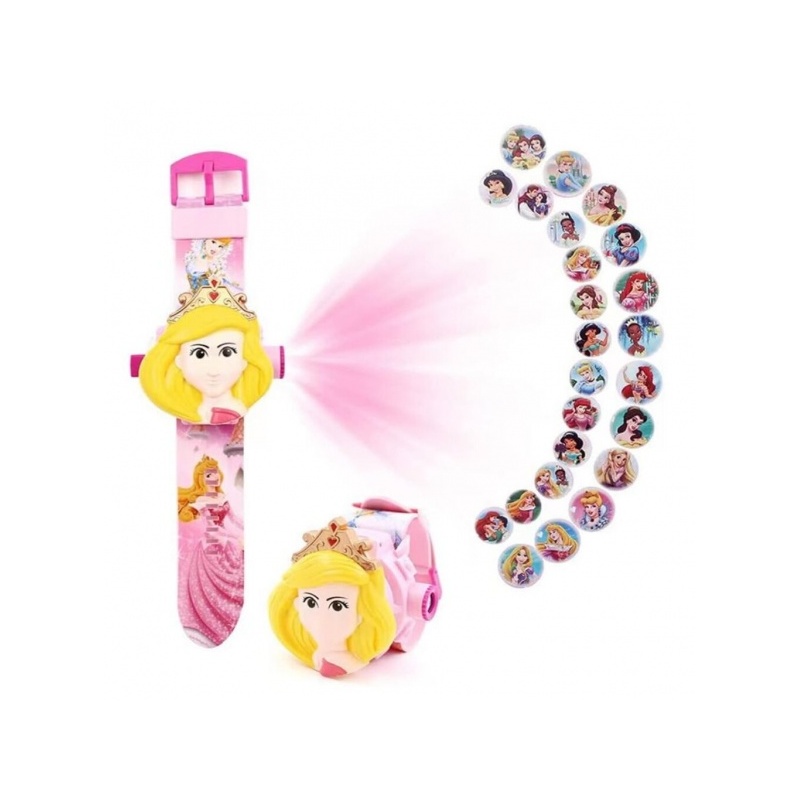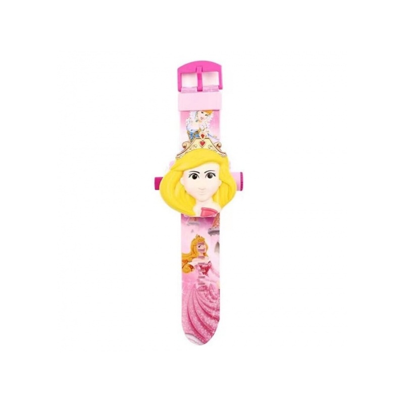 Digitaalinen kello projektorilla Disney Princess -hahmoilla.