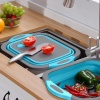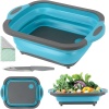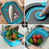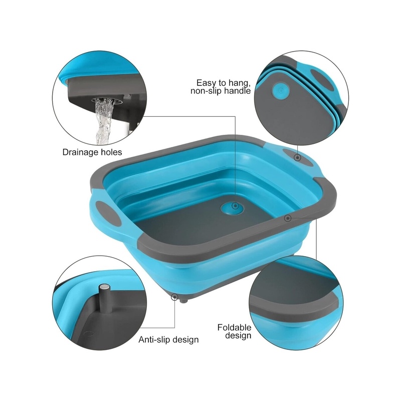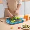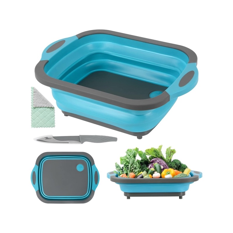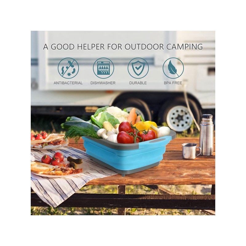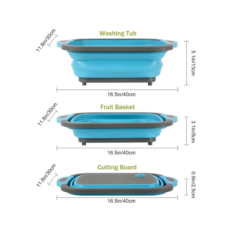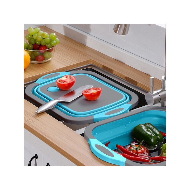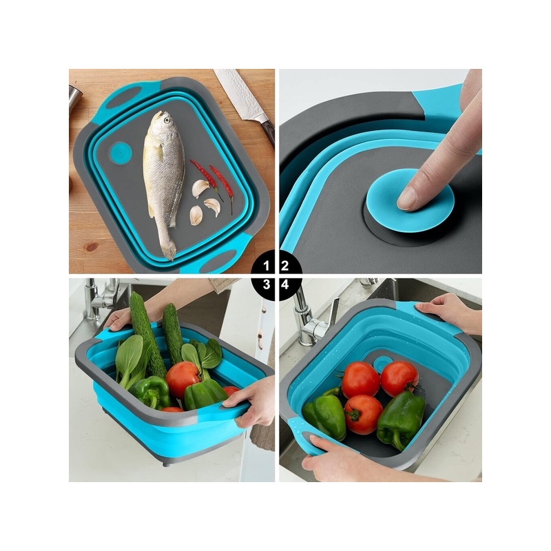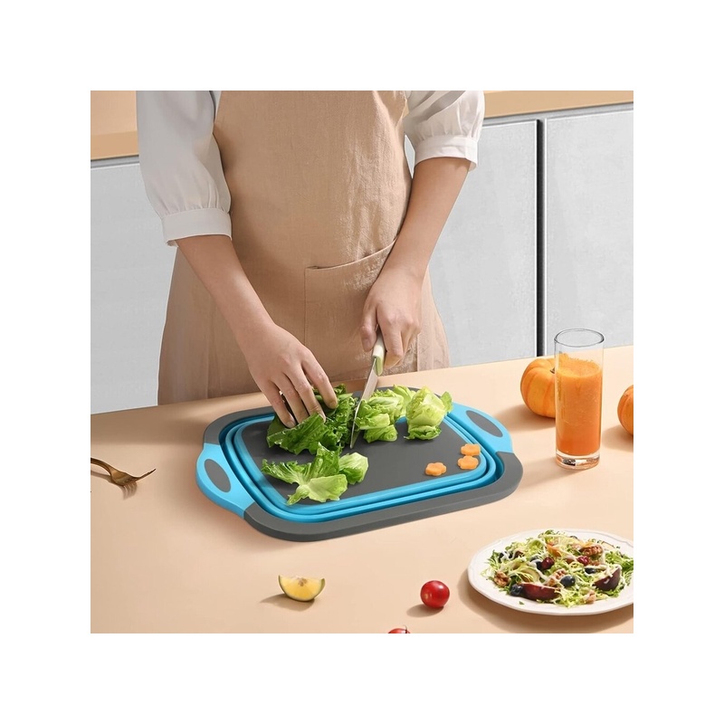 Monikäyttöinen leikkuulauta 3in1. Taitettavaa muovista leikkuulautaa voidaan käyttää kolmella tavalla. Sitä voidaan käyttää vihannesten/hedelmien/lihan jne. puhdistamiseen ja sitä voidaan käyttää myös vihannesten/hedelmien säilytykseen. Se sopii hyvin myös keittiön leikkuulaudalle, joka sopii koko perheen tarpeisiin.