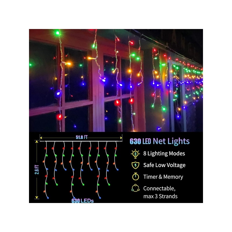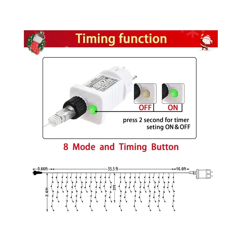 8 tilaa ja muistitoiminto: Valaisimissa on 8 valaistustilaa, joista voit valita (yhdistelmä, aalto, peräkkäinen, hidastettu, metsästys/salama, hidas häipyminen, välähdys/vilkku, jatkuva valo). Erilaisia valaistusefektejä ohjataan kaukosäätimellä tai sovitinpainikkeella. Muistitoiminnon ansiosta LED-seppeleet muistavat viimeksi valitun tilan, joten niitä ei tarvitse nollata joka kerta.
