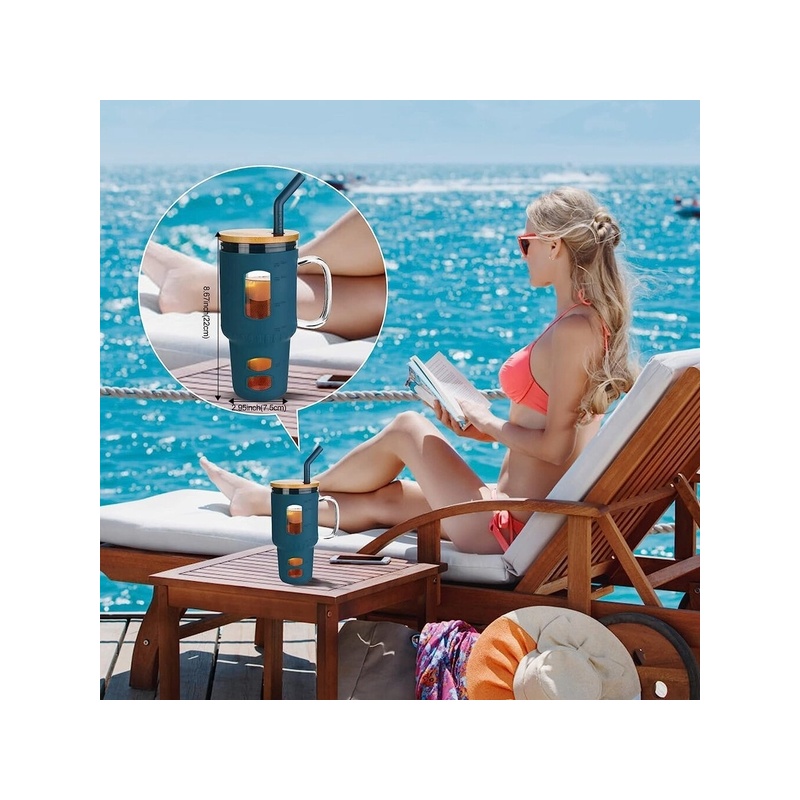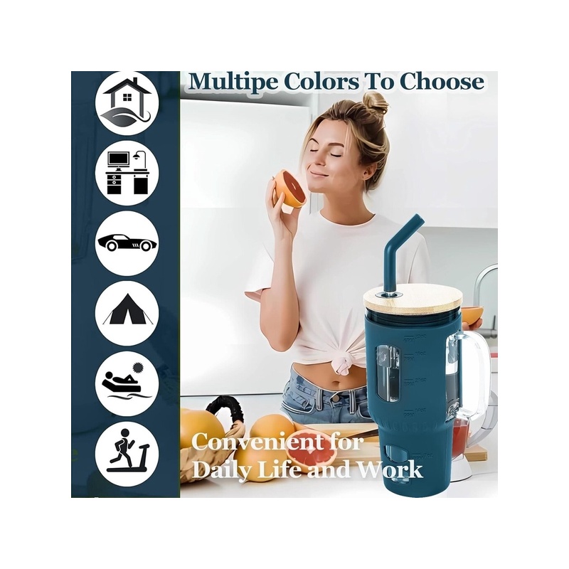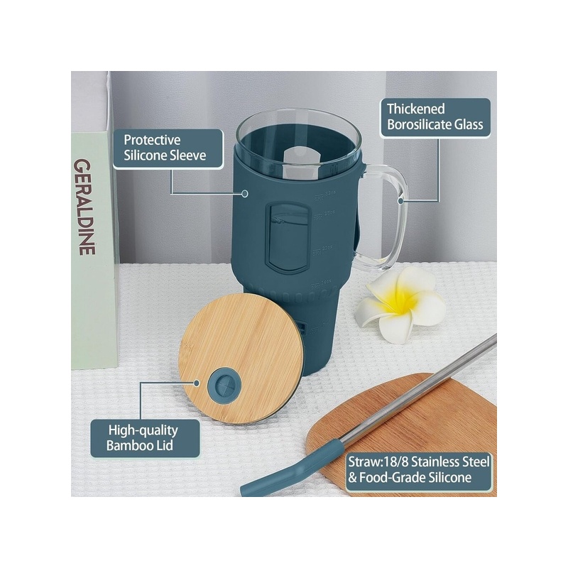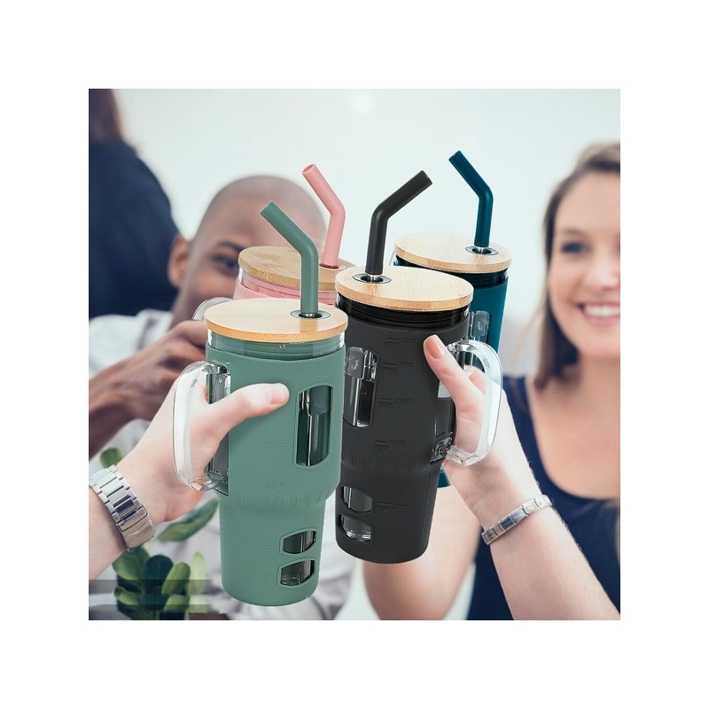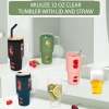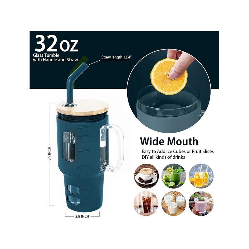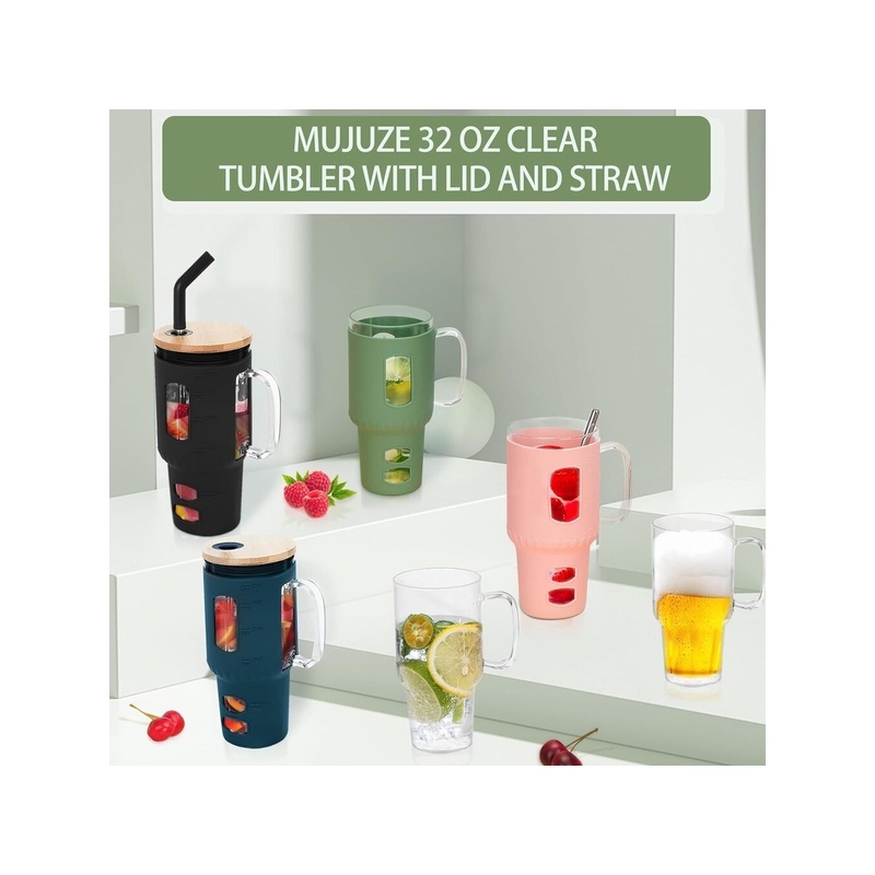 MUJUZE Large Capacity Glass Tumbler -astian tilavuus on 32 unssia (946 ml). Voit kaataa kylmiä juomia, kahvia ja maitoa, ja lasi on ihanteellinen kotiin, töihin ja matkoille.