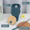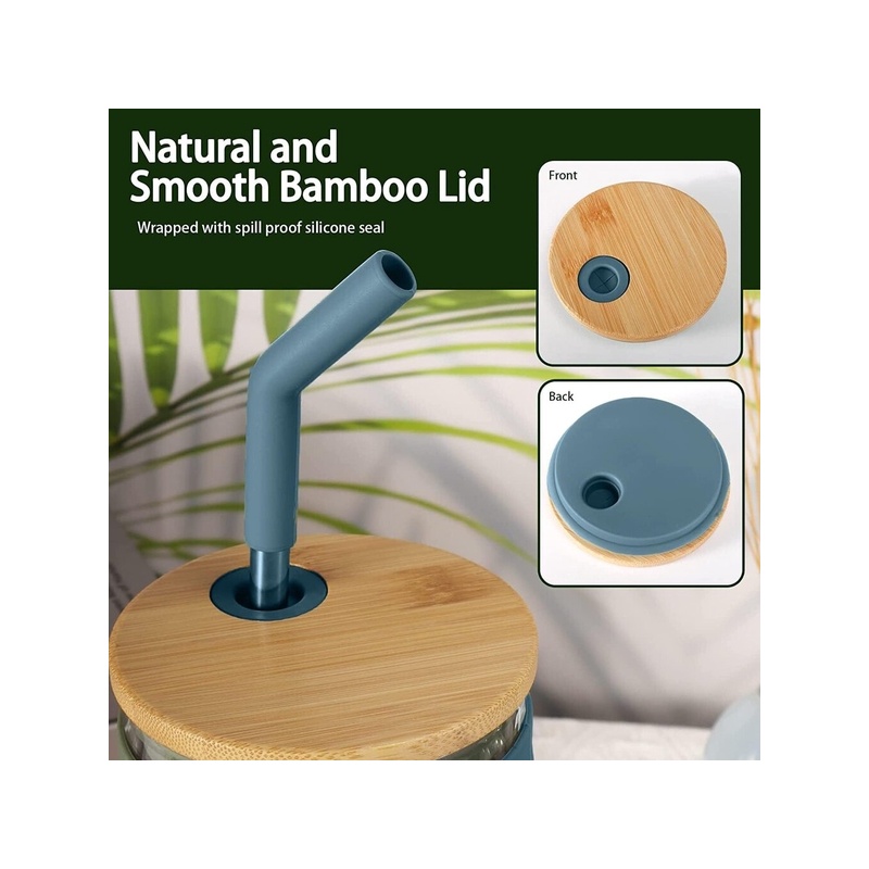 Lasin mukana tulee bambukansi, jossa on ilmatiivis silikonitiiviste ja ruostumaton teräspilli.