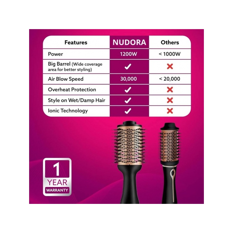 ALL-IN-ONE HIUSTENMUOTOILULAITE: Tämä Vegan hiustenkuivaajaharja on täydellinen muotoilutyökalu, jonka avulla voit kuivata hiuksesi ja kokeilla useita kampauksia yhdellä työkalulla. Tämän muotoilulaitteen ja hiustenkuivaajan yhdistelmän avulla voit helposti suoristaa, selvittää ja lisätä hiuksiisi volyymia sekä kuivata ne maksimaalisella mukavuudella.