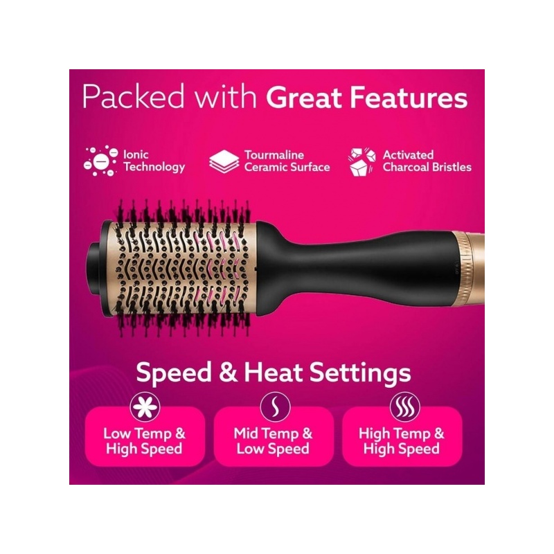 USEITA NOPEUSASETUKSIA: Hiustenkuivaajaharjassa on 3 lämpötila-asetusta ja 2 nopeusasetusta, jotka tarjoavat maksimaalisen monipuolisuuden hiusten kuivaamiseen ja muotoiluun. Se on täydellinen hiustenmuotoilutyökalu, jota voidaan käyttää kaikille hiustyypeille, kuten hienoille, keskipitkille, paksuille, kiharille, laineikkaille ja suorille hiuksille.