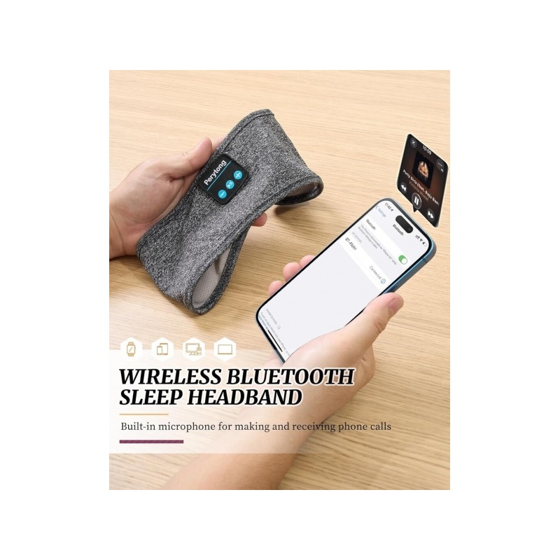 【Unikuulokkeet, Bluetooth-uni-maski, Bluetooth-urheilupanta 3 yhdessä】Perytong Bluetooth-unikuulokkeissa on pehmeä panta ja langaton unikuuloke, joiden avulla voit nauttia musiikista handsfree-tilassa ja suojata sinua sekavilta hiuksiltasi ja hieltä. Urheilupanta sopii täydellisesti nukkumiseen, lentomatkustukseen, kuntosalille, treenaamiseen, juoksuun, joogaan ja myös nukkumiseen. Bluetooth-pantakuulokkeet ovat hienoja teknisiä lahjoja miehille/naisille/perheelle/teini-ikäisille/ystäville.