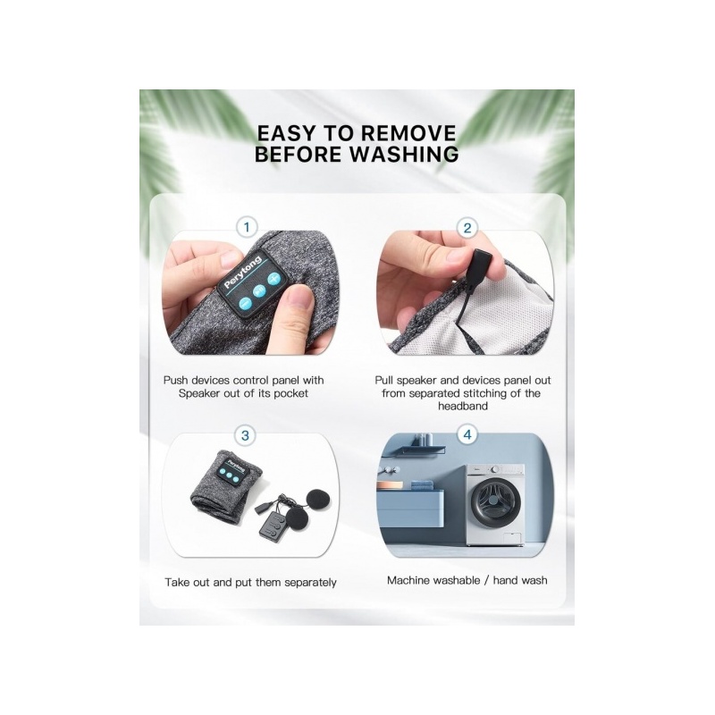 【Mukava ja hengittävä materiaali, pestävät】 Bluetooth-kuulokkeet sangalla on valmistettu kestävästä punotusta johdosta ja varustettu hengittävällä verkkovuorilla. Ne ovat erittäin joustavat ja sopivat useimmille päänkooille. Lisäksi ne ovat uskomattoman pehmeät ja hypoallergeeniset. Nukkumiseen tarkoitetut Bluetooth-kuulokkeet ovat konepestävät, poista vain ohjausrasia ensin. Hienoja lahjoja kiitospäivään, joululahjoihin, joulupukin salaisuuksiin, syntymäpäiville, äitienpäivälle, ystävänpäivälle ja moniin muihin lahjojen antamisen tilaisuuksiin. 【Päivitetty laatu, 24/7 palvelu】 Perytong on päivittänyt nukkumiseen tarkoitettujen Bluetooth-kuulokkeiden sangan paremmaksi ja vakaammaksi, tehnyt siitä joustavan sopimaan useimmille päänkooille ja käyttänyt ohutta, kevyttä kangasmateriaalia, joka on pehmeä eikä koskaan värjäydy tai tahriinnu.