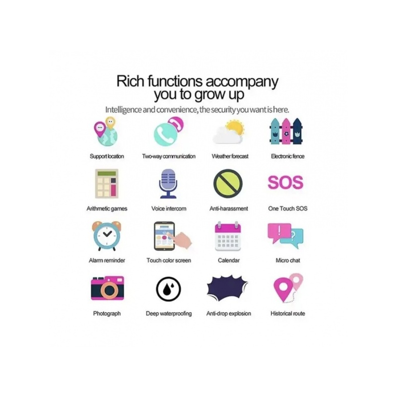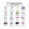 Toiminnot: Valaistus, Herätyskello, Viikko, MAAILMANAIKA, Unenseuranta, Fitness Tracker, Pienet Sekuntit, Laskimet, Puhelumuistutus, Puheluvastaus, Push-viesti, Mielialan seuranta, Viestimuistutus, Automaattinen puhelu, Pituusmittari, Sykemittari, 24 tuntia ohjeet, veren happimittari