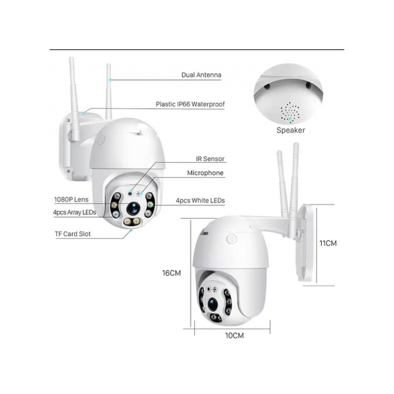 Erikoisominaisuudet: Ihmisen liikkeenseuranta, kasvojen tunnistus, YÖNÄKÖ, liikkeentunnistus, äänentunnistus, veden-/säänkestävä, sisäänrakennettu sireeni, PAN-TILT, kaksisuuntainen ääni.