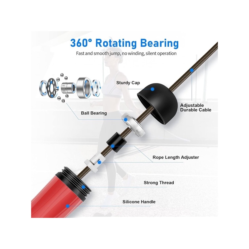 Kiertymätön naru ja liukumaton kahva: Hyppynarussa on kiertymätön naru ja liukumattomat kahvat mukavan otteen takaamiseksi hyppäämisen aikana. Ergonomiset silikonikahvat ja kosteussuoja pitävät kätemme kuivina ja auttavat saavuttamaan täydellisen nopean hypyn.