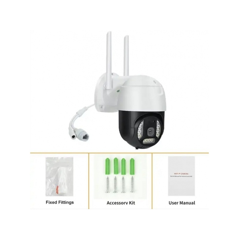 Toiminnot: Kaksisuuntainen ääniyhteys, Kääntö, Poikkeavan äänen tunnistus, Hälytystulo- ja lähtö, Nollaus, Integroitu mikrofoni, Yökuvaus, Vedenpitävyys / säänkestävyys, Laaja kulma, Integroitu hälytin.