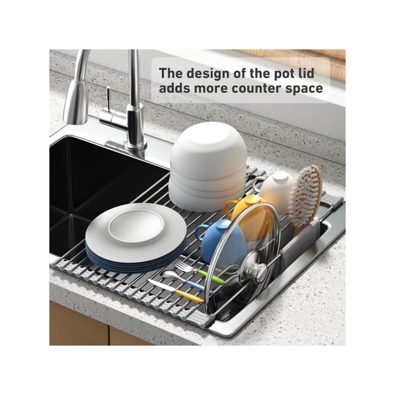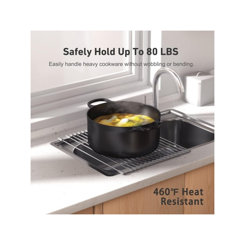Korkealaatuinen kiinteä silikoni: 100 % BPA-vapaa, turvallinen ja vaaraton. Astiateline on valmistettu ruostumattomasta teräksestä ja kuusikulmaisella silikonireunalla kestävyyden takaamiseksi.