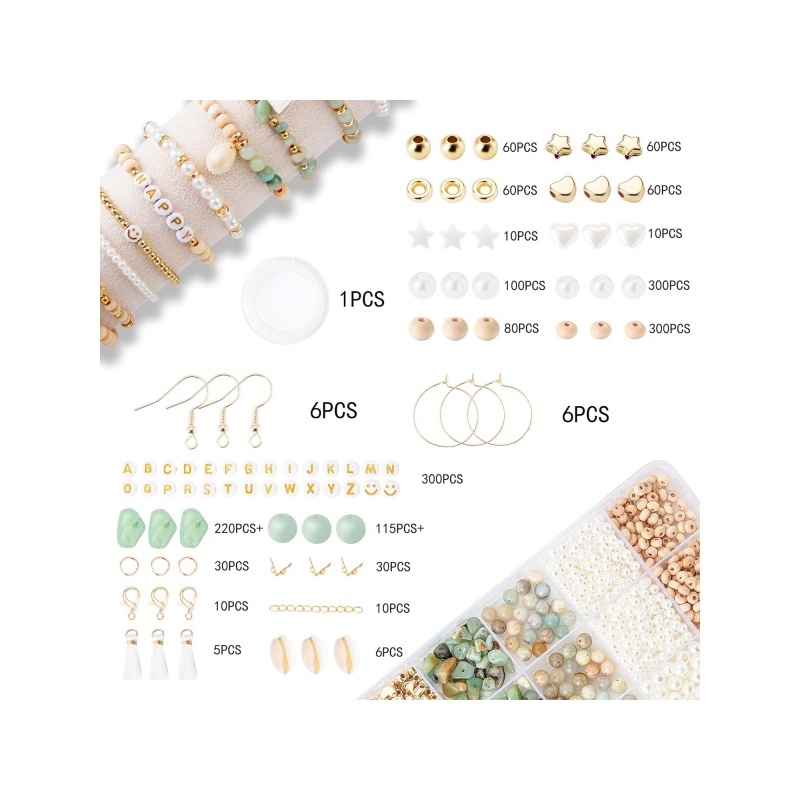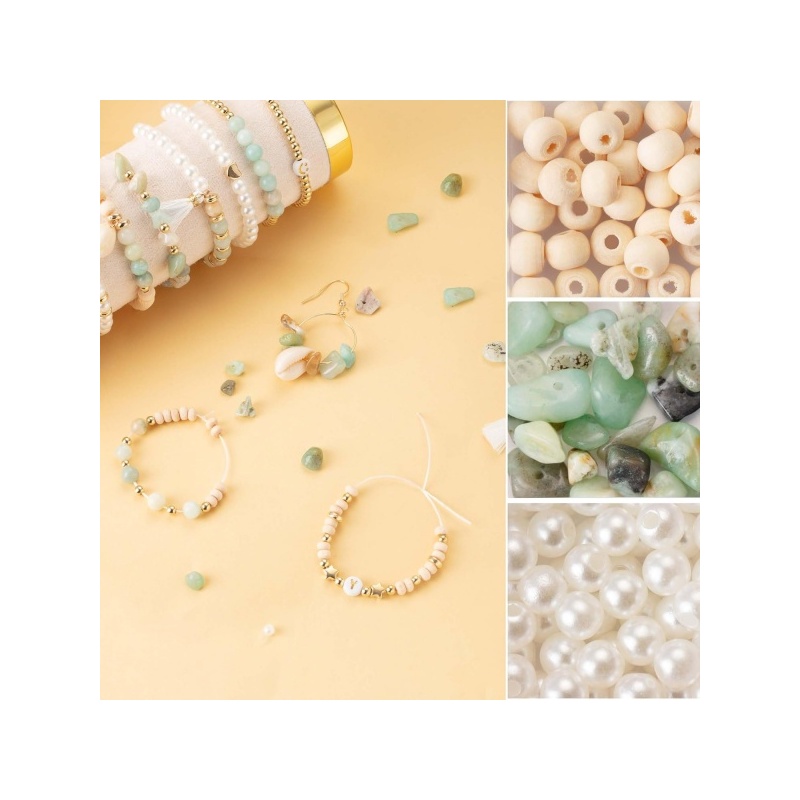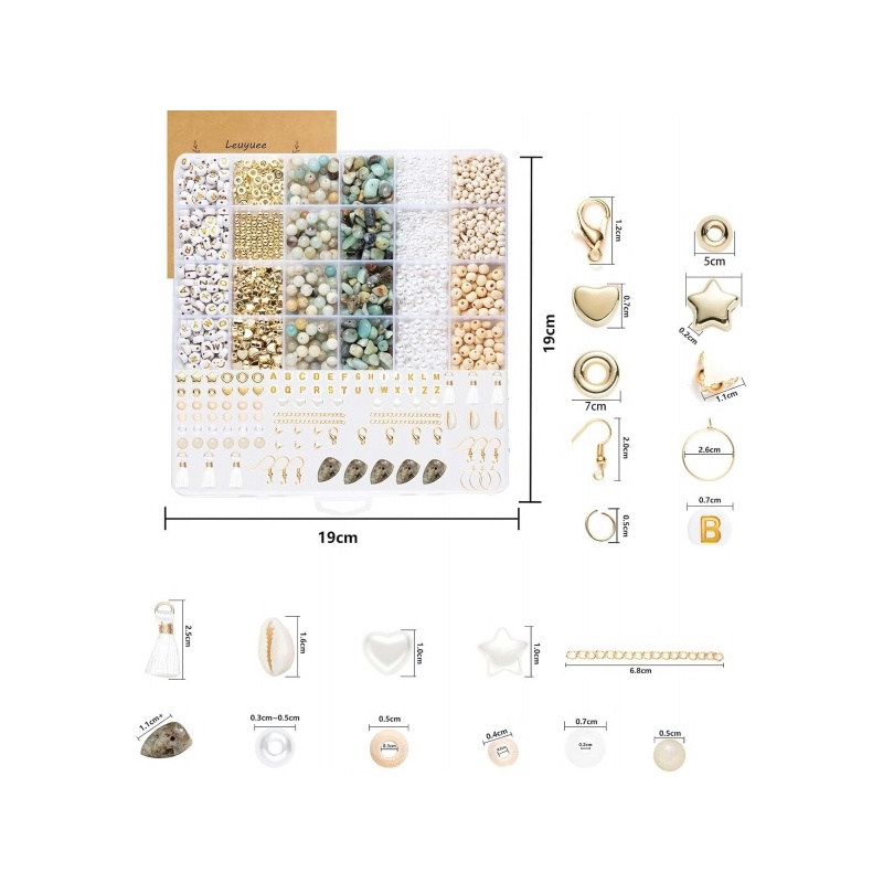 • Laadukkaat helmet: luonnonkivien lisäksi setti sisältää luonnonhelmiä ja akryylisiä kirjainhelmiä. Ne ovat kestäviä, hyvin tehtyjä ja puoliläpinäkyviä. Helmet on pakattu kestävään muovirasiaan, joten värien erottaminen on helppoa.